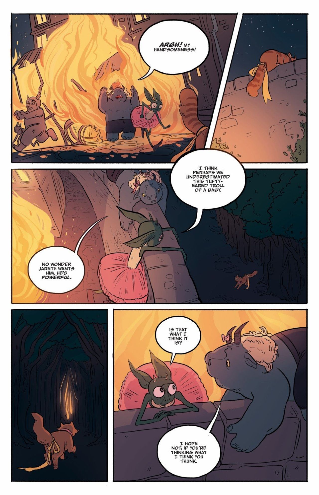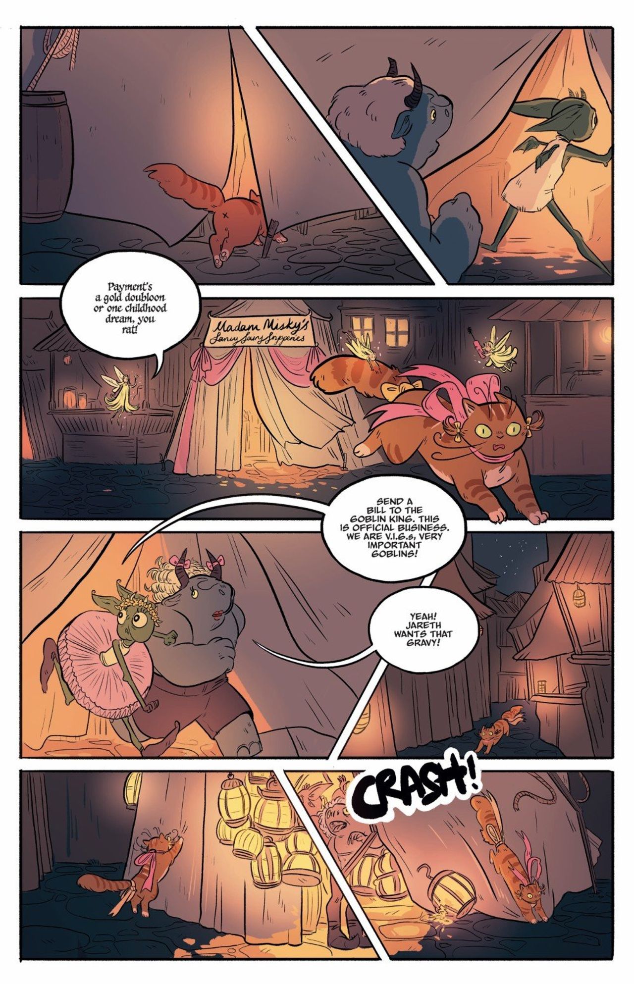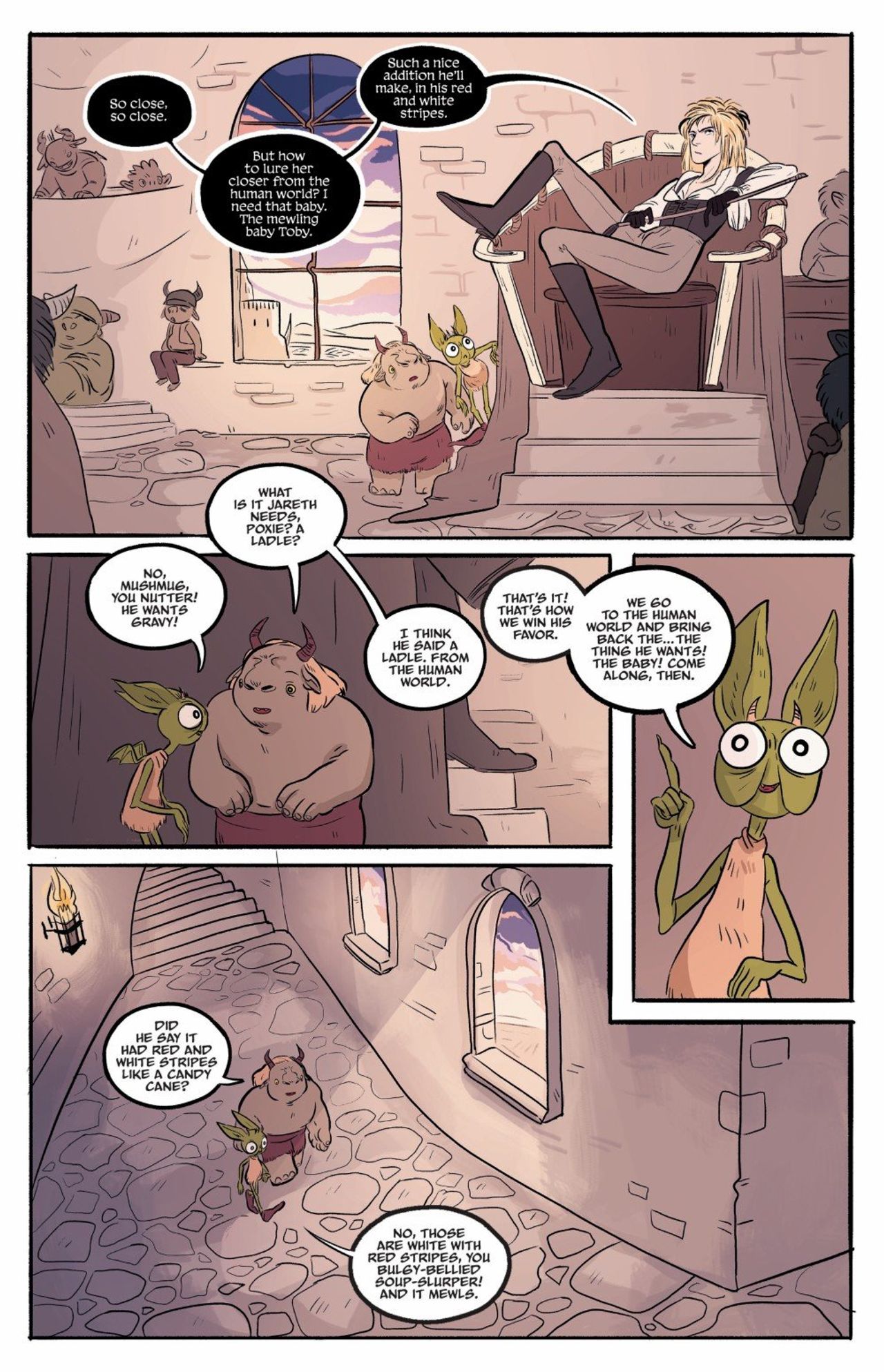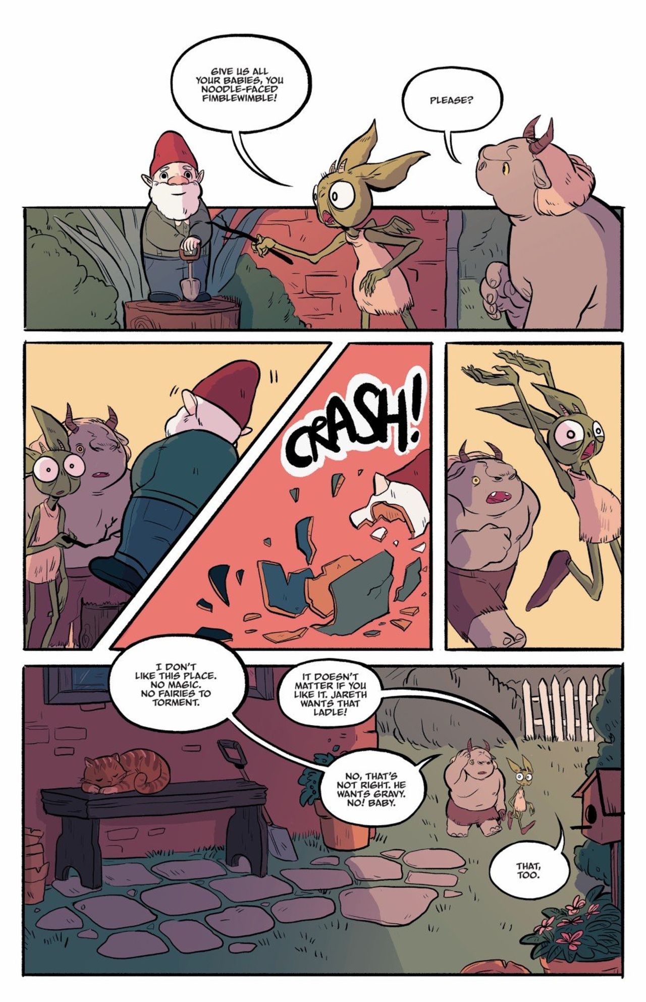 Jim Henson’s Labyrinth: Beyond the Goblin City spotlights the secret history of Sir Didymus and the untold story of one of Jareth’s Masquerade guests, in addition to tales featuring fan-favorite characters like Ludo, Hoggle, Ambrosius, and the Goblin King himself.