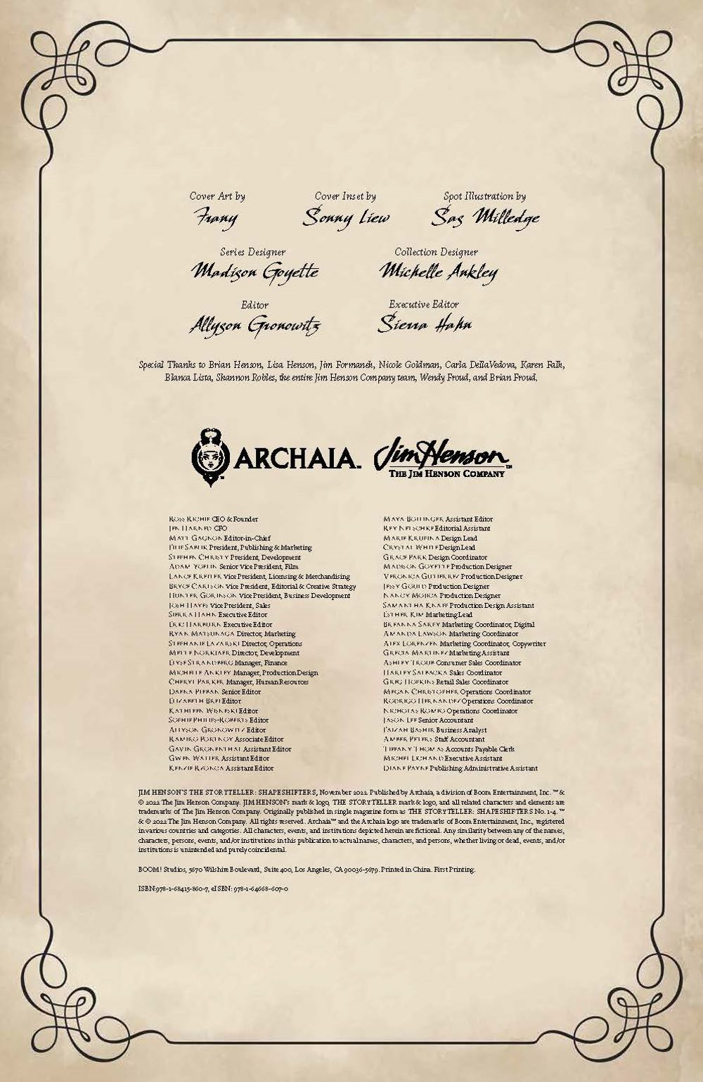 The Ringo Award-winning anthology series returns with four spellbinding fables based on Caribbean, Lipan Apache, Celtic, and Japanese Shapeshifter myths! Award-winning authors, along with a team of incredibly talented artists, curate this collection of legends from around the world, brought to life with timeless themes that will delight Henson fans and all readers. Collects Jim Henson's The Storyteller: Shapeshifters #1-4.