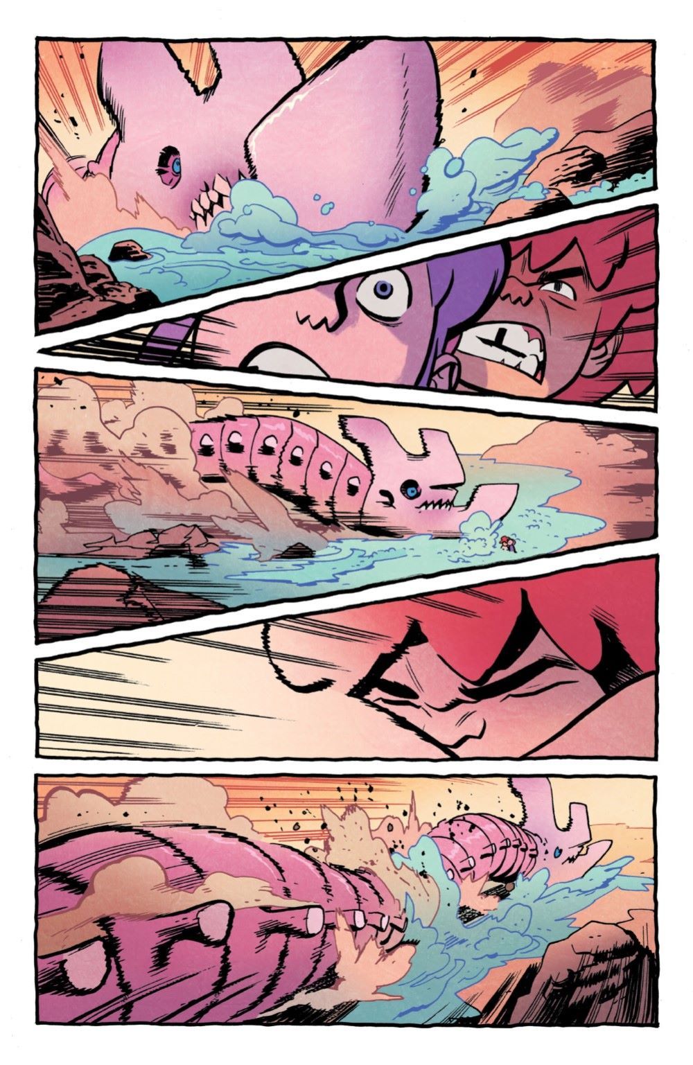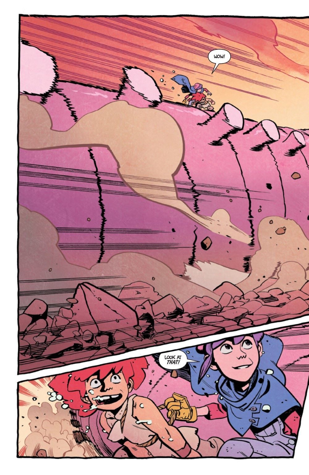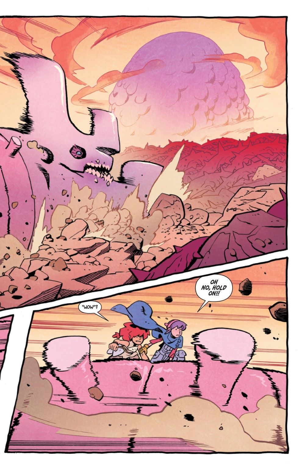 As Rainbow and Jonna continue to make their way in search of their missing father, they are drawn through monster-infested wastelands toward a spot on the horizon that seems to be surrounded by the strange creatures invading their world. Braving feuding kaiju and razor-sharp vines to get there is one thing, but will our favorite sisters be able to even get inside this mysterious zone when they do? Plus: the return of Gor and Nomi! This issue is 100 percent incredible high-octane action—not to be missed!