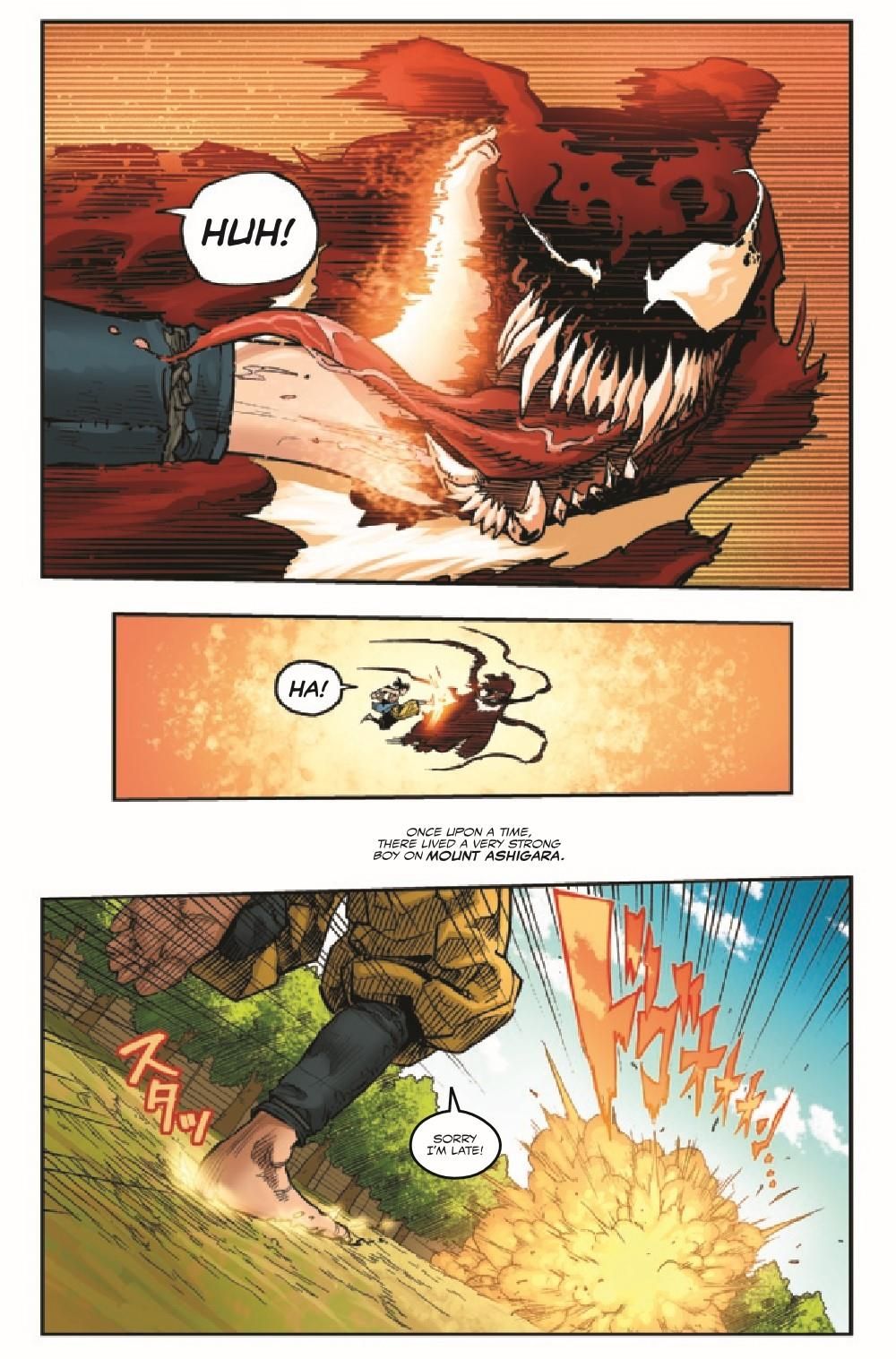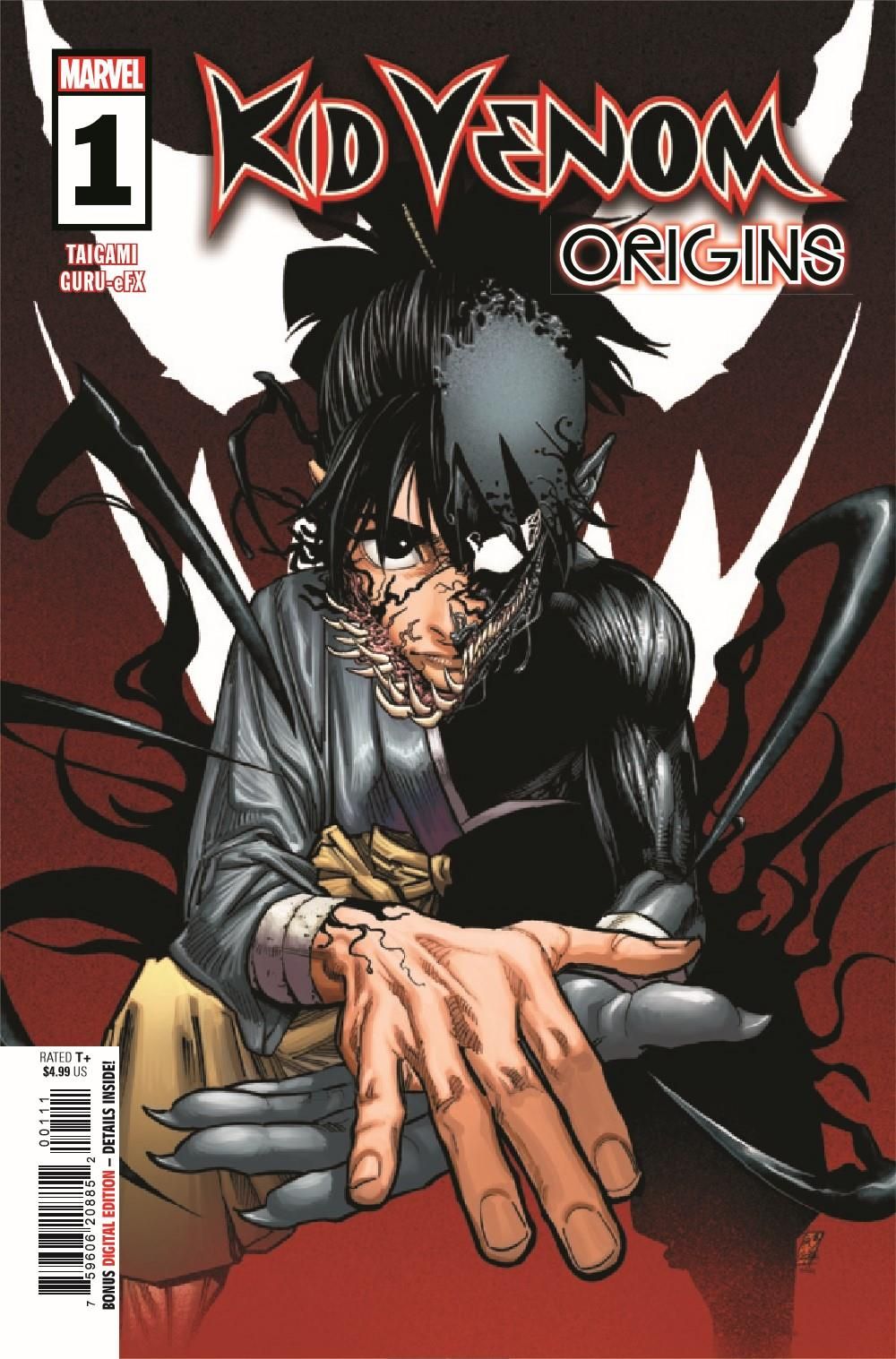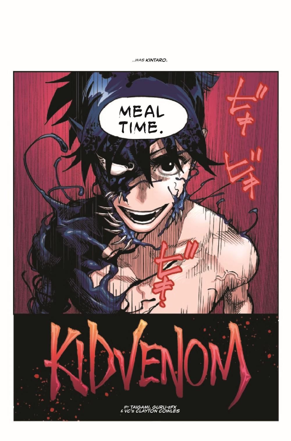 THIS IS KID VENOM! For the first time collected in one issue, the full four parts of KID VENOM from DEATH OF THE VENOMVERSE! Also, behind-the-scenes content never before seen, including the original work that brought Taigami to Marvel! Plus: A glimpse at what the future holds for KID VENOM!
