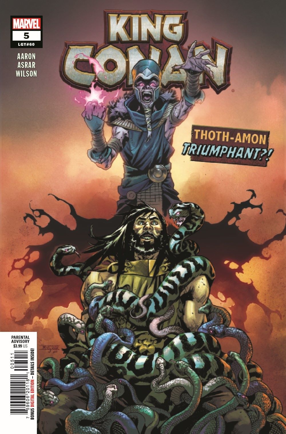 THE TERRIBLE TRIUMPH OF THOTH-AMON! For years, THOTH-AMON has attacked CONAN from afar…now, at last, they stand face-to-face on this cursed isle to enter into what may be their FINAL BATTLE! Will the showdown for the ages truly end the reign of Conan and his heirs? And - a glimpse into the never-before-revealed past of the Stygian wizard - from the boy worshipping Set to the sorcerer who will strike fear into the Hyborian Age with the utterance of the name THOTH-AMON!