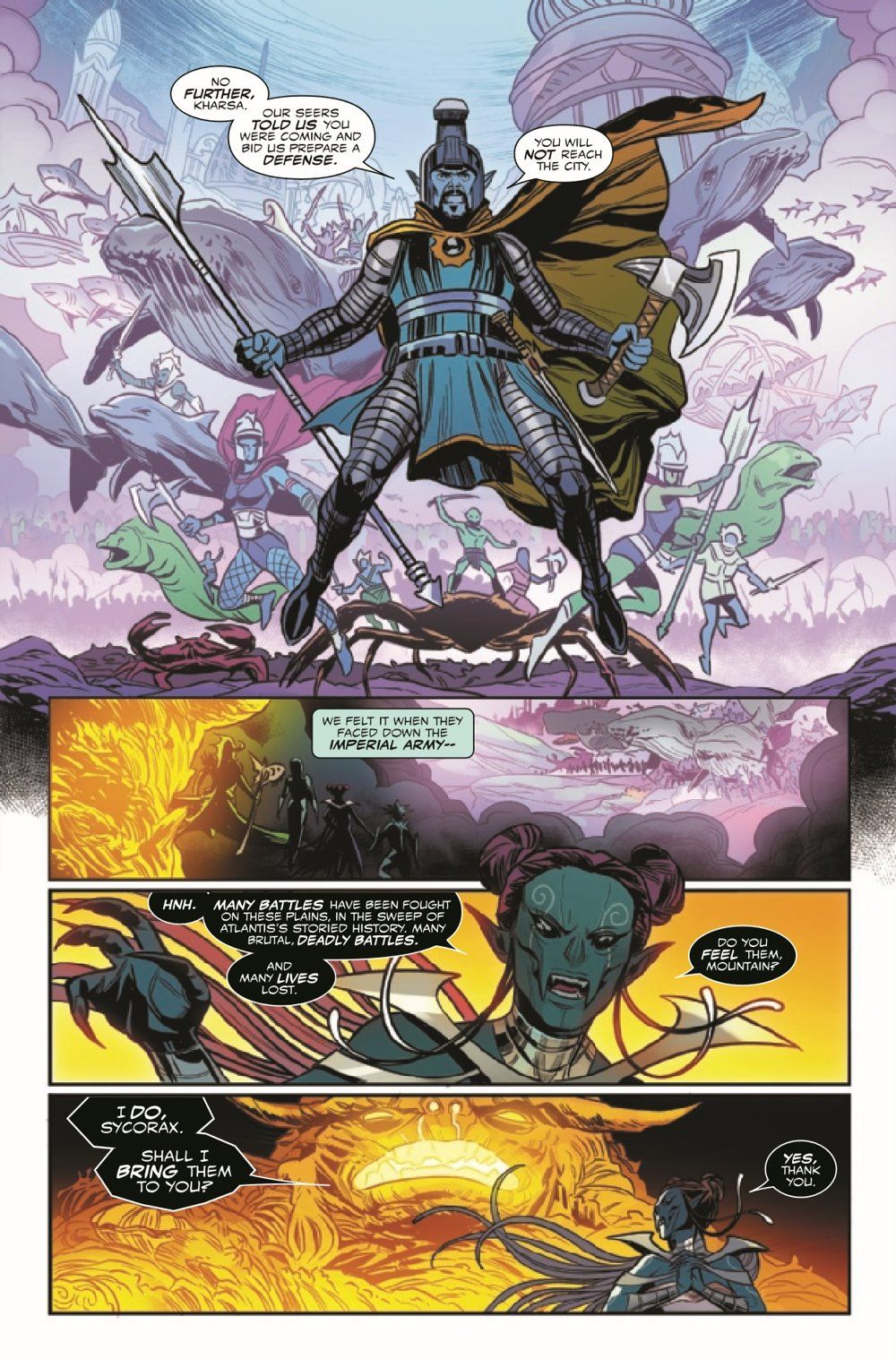 The Black Tide's wave of devastation now threatens Atlantis itself. Namor, Dorma and Attuma may be the undersea world's only hope, but unless they can shake off their utter defeat from last issue, they don't even stand a chance. And worse, the one possible weapon they could wield against the Black Tide is in Murmansk, thousands of miles away. It's Atlantis's darkest hour...