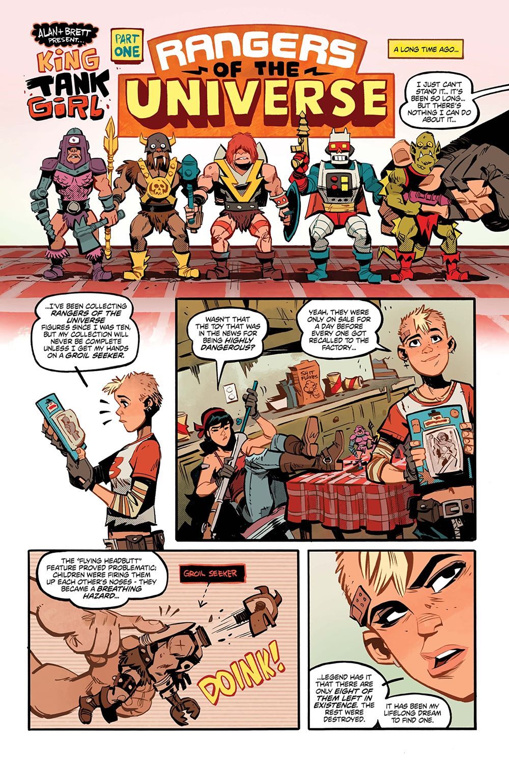 Writer and co-creator Alan Martin returns with fan-favorite artist Brett Parson to bring you the all-new adventures of the classic, punk rock comic character Tank Girl! Turning the clock back to the early years, King Tank Girl offers up a veritable banquet of brand new stories: Tank Girl and the gang head to the beach for "Barney Don't Surf"; they explore the expensive world of Wellbeing; and Tank Girl is crowned King of England. And all that before tea time!