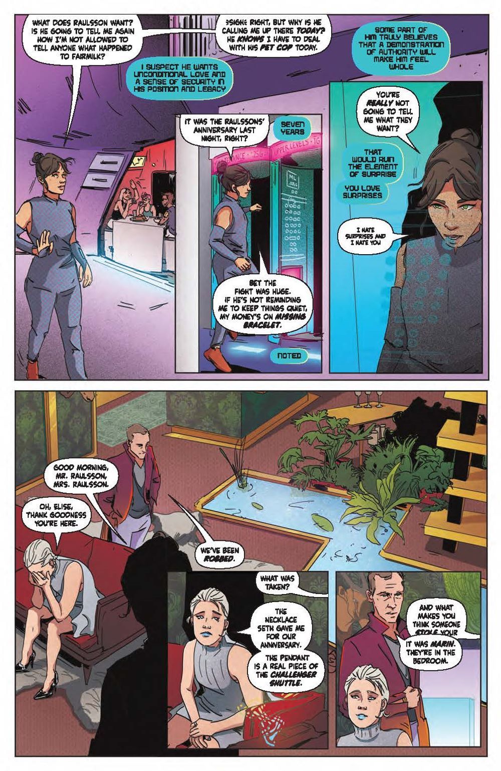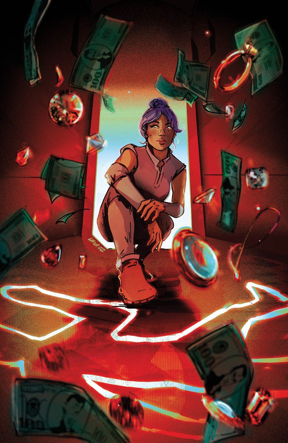 NEW SERIES. The wealthiest people in the solar system abandoned the Earth for a private sanctuary in space, leaving the rest of us to die amidst cataclysmic climate change. But the 1% won't be safe for long…A murderer is on the loose, specifically targeting the super-rich. Soon Elise, an employee of the billionaire's space station, is wrapped up in a deadly investigation, with each issue featuring a new, diabolically different kill! 2021's breakout writer Sarah Gailey (Eat the Rich) and rising star Liana Kangas (TRVE KVLT) take a stab at the ultra-wealthy, their dreams of escaping the very planet they've put in peril, and the consequences of a future that might not be so far away…