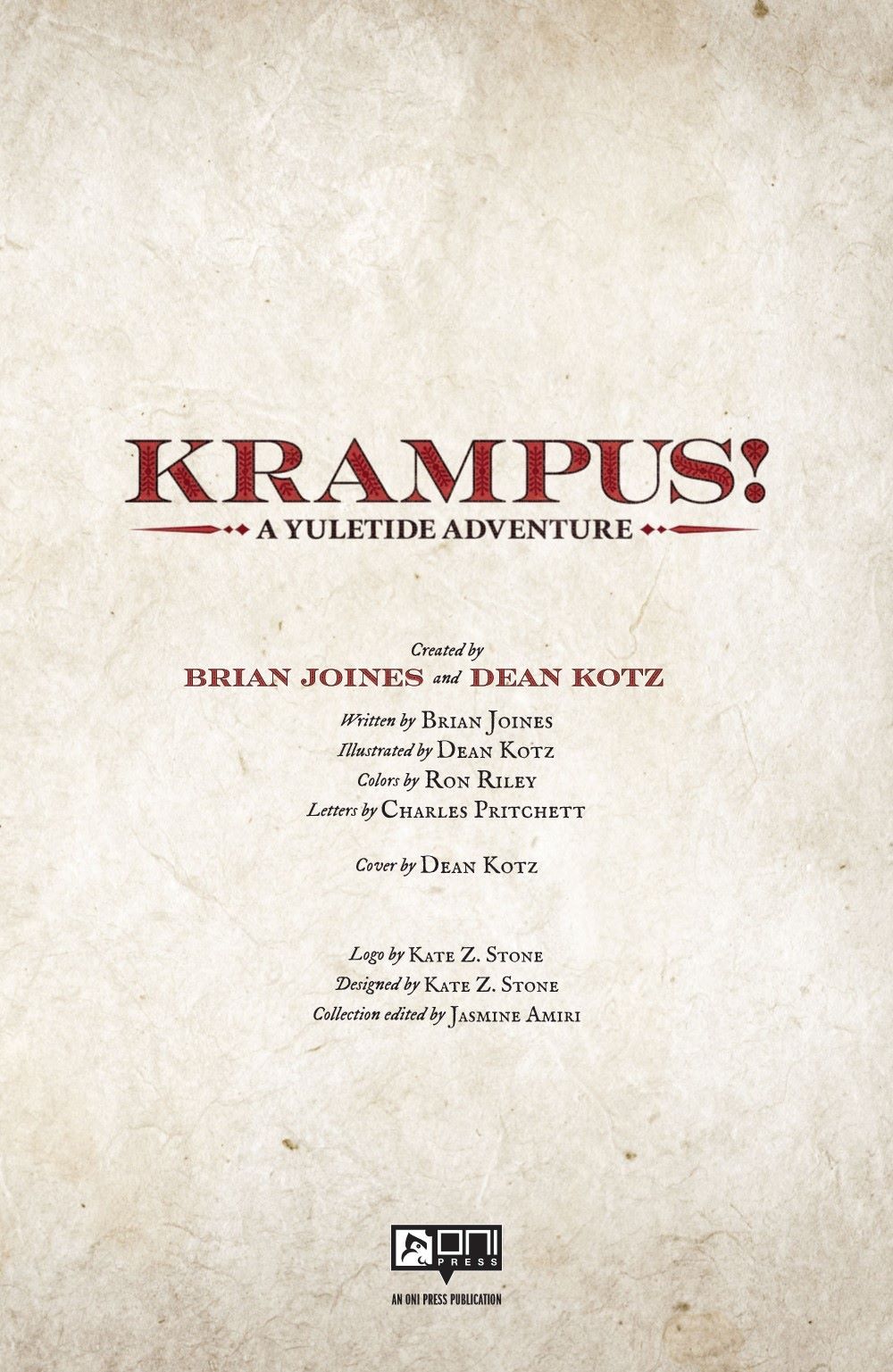 Collecting the original five-issue series by Brian Joines (Backtrack, Imagine Agents) and Dean Kotz (The Butcher of Paris) in a new special edition printing, Krampus is back with a fresh cover as well as bonus content from the creators!