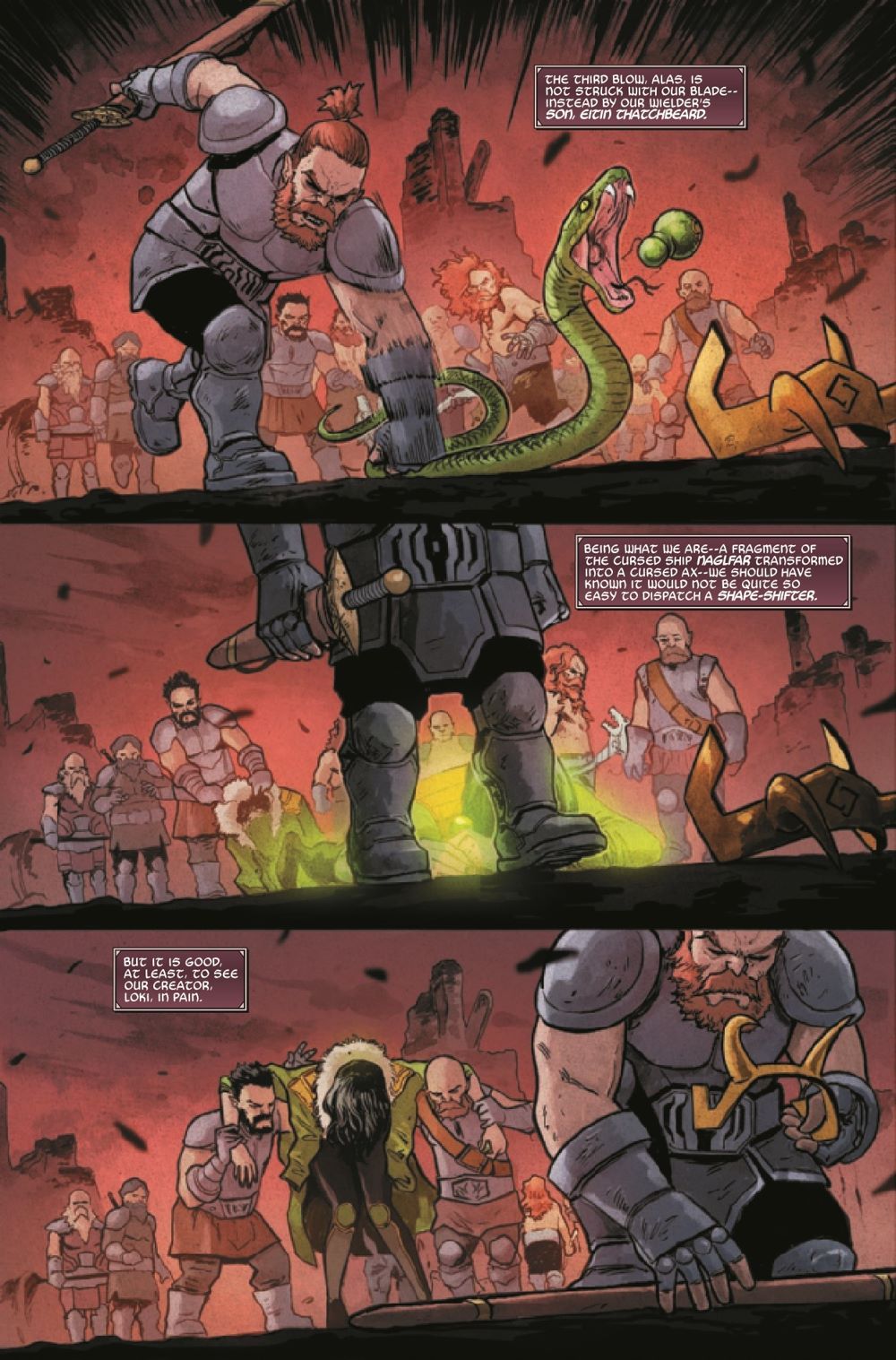 The past can never just stay buried, can it? Loki's turn at playing "good guy" has been interrupted by the resurgence of relics from his nefarious past. Now that he's set sail on his ship made of fingernails, he tracks the first of these to the destroyed Nidavellir - where the relic has been crafted into a devastatingly powerful weapon that the dwarves are warring over. And as a bonus: A pair of unexpected Marvel fan-favorites appear to clean up past Loki's mess!