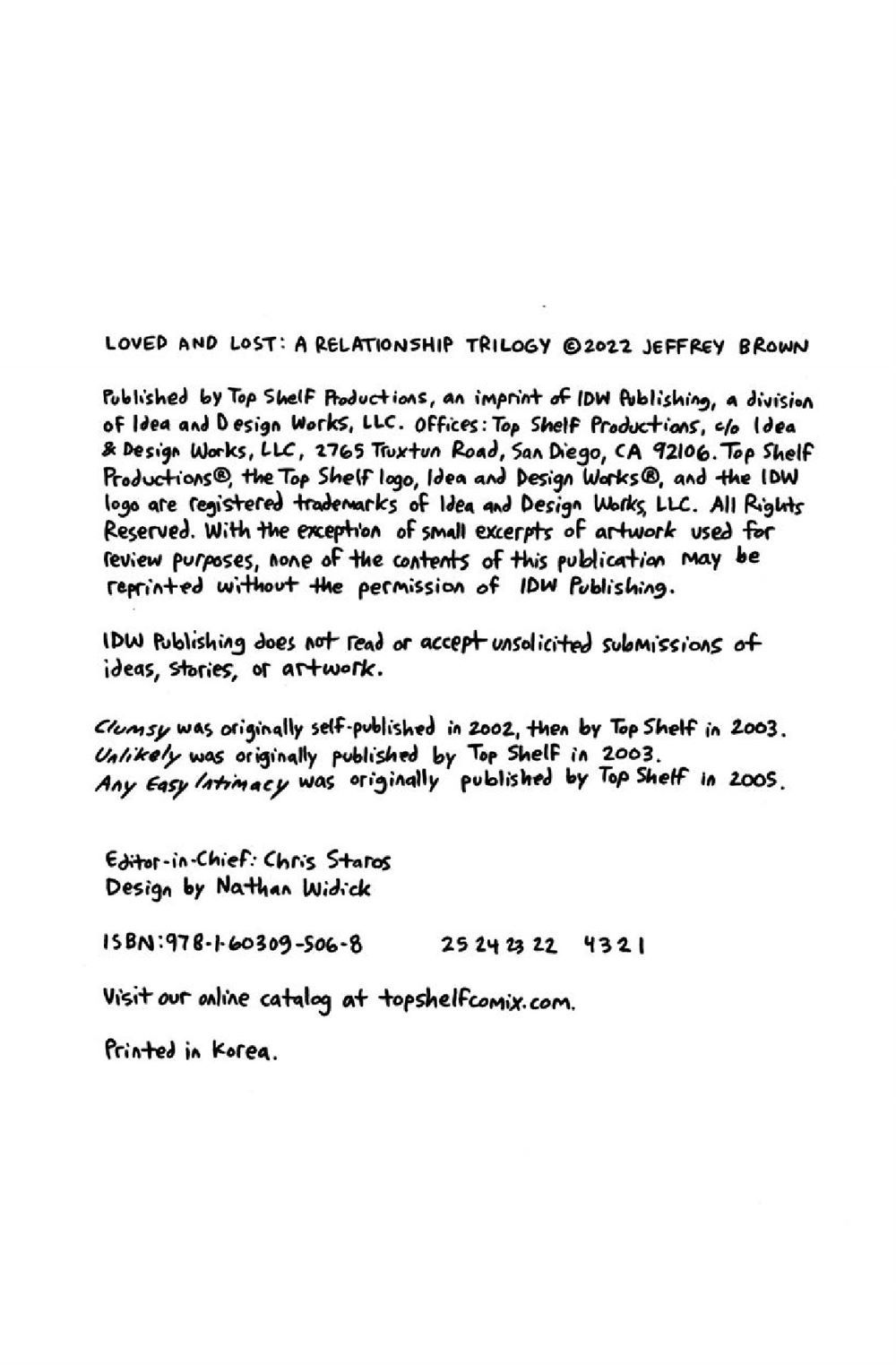 A pioneer of 21st-century graphic memoir, Jeffrey Brown captures timeless insights into love, intimacy, and vulnerability in three unforgettable relationship portraits.