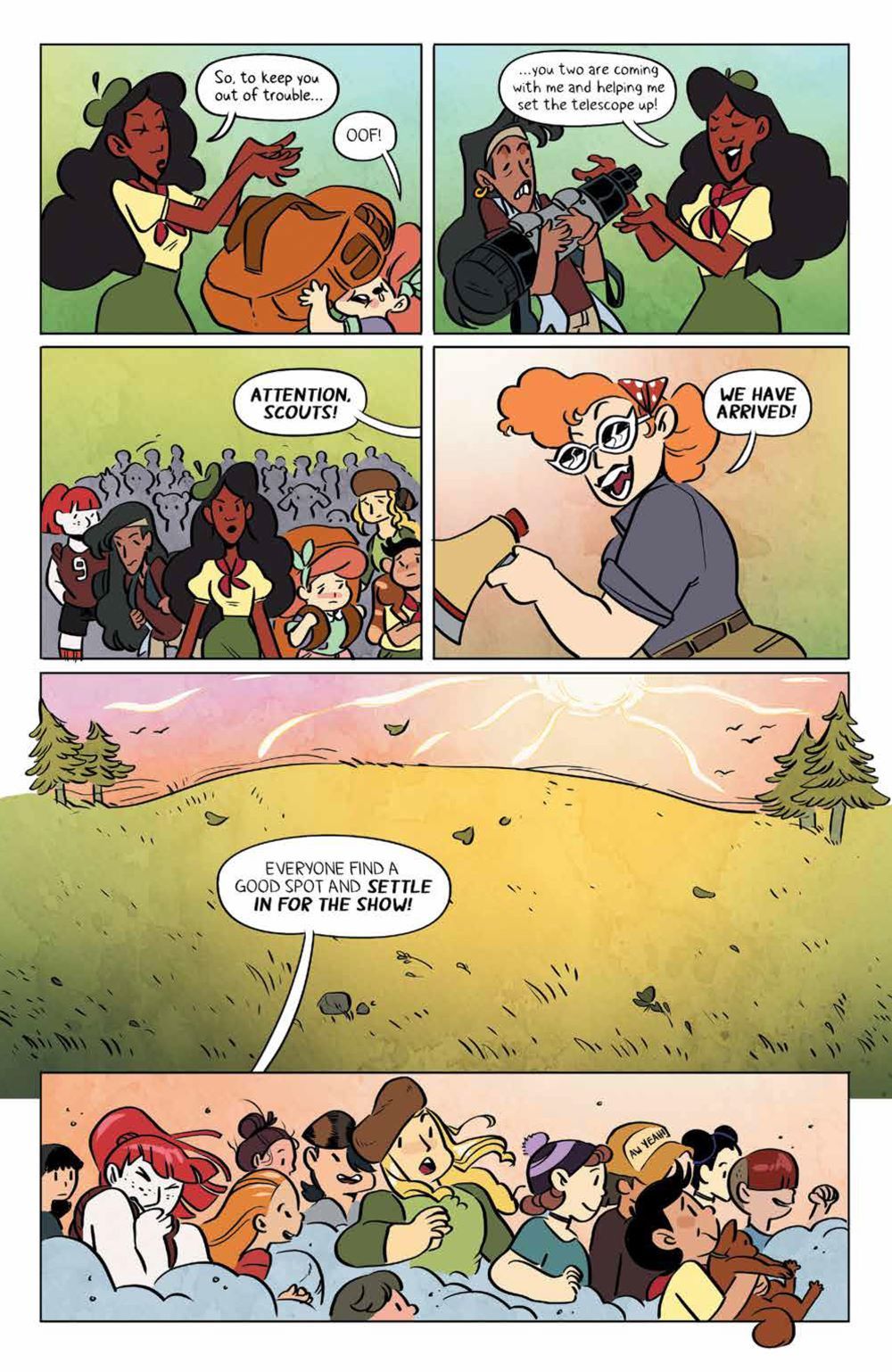 Jen and Rosie plan to take the Lumberjane scouts to see an amazing astronomical event. But their night of star-gazing is thrown off course when half of the Roanoke and Zodiac cabins sneak away into the night in search of aliens, leaving everyone else to deal with a gatecrashing goddess who throws the entire camp into a tizzy. Not to mention there's a nefarious kitten-napping and a super-secret crush to contend with!