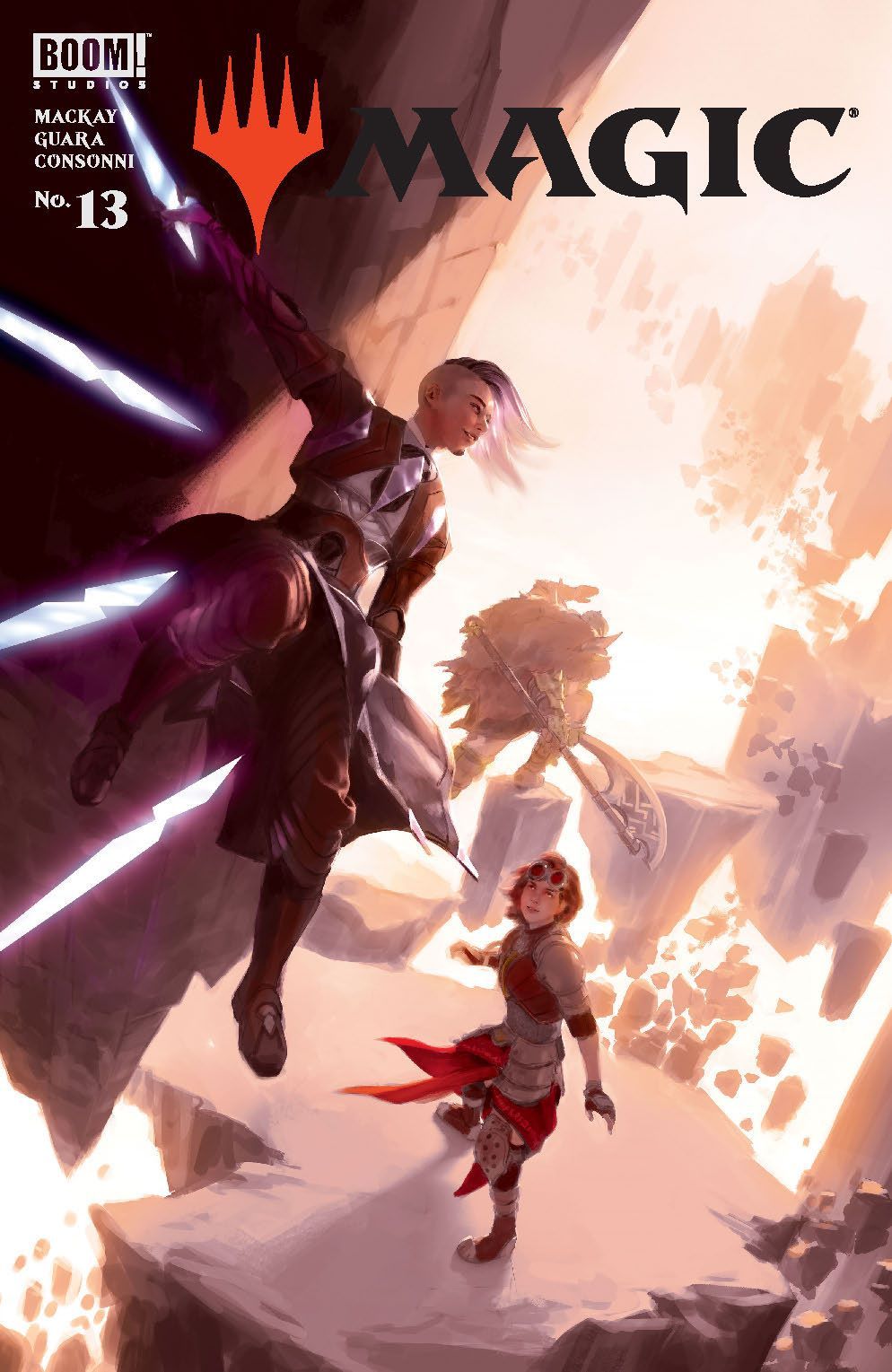 In Zendikar, tomb-raiding and death-defying adventures await as our three heroes finally learn to work as a team—with Chandra Nalaar as the unexpected and reluctant leader. In the hazards surrounding the Sky-Ruin, they encounter [REDACTED], pushing Garruk's hatred to the limit and sending the three into a reckless pursuit in the dangerous ruins. Who is this mysterious figure that's caught Garruk's ire? And what new perils await in the depths of this ancient plane?