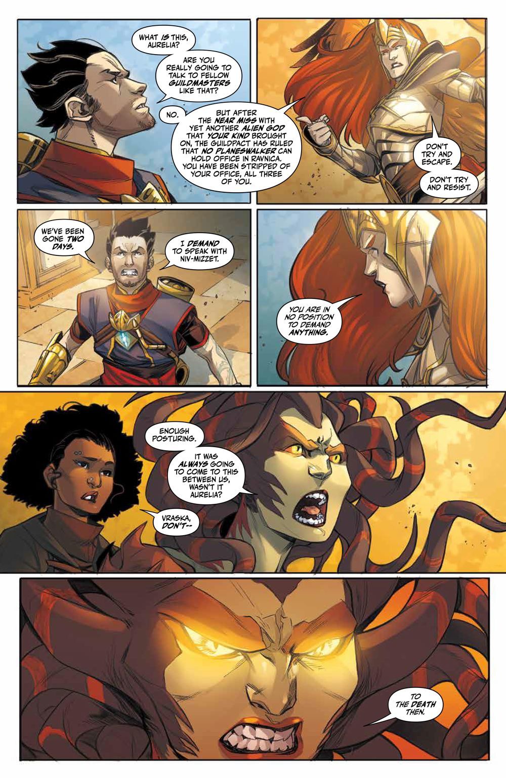 The newly-revealed spectral planeswalker brings newfound ramifications for our trio, as well as knowledge of the extraplanar peril and political conflict unfolding in Ravnica. With a powerful planeswalker with grand ambitions revealed as the puppet master behind it all, what are Chandra, Niko, and Garruk going to do about it?