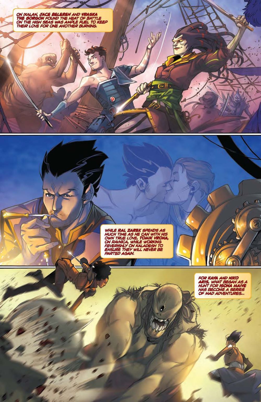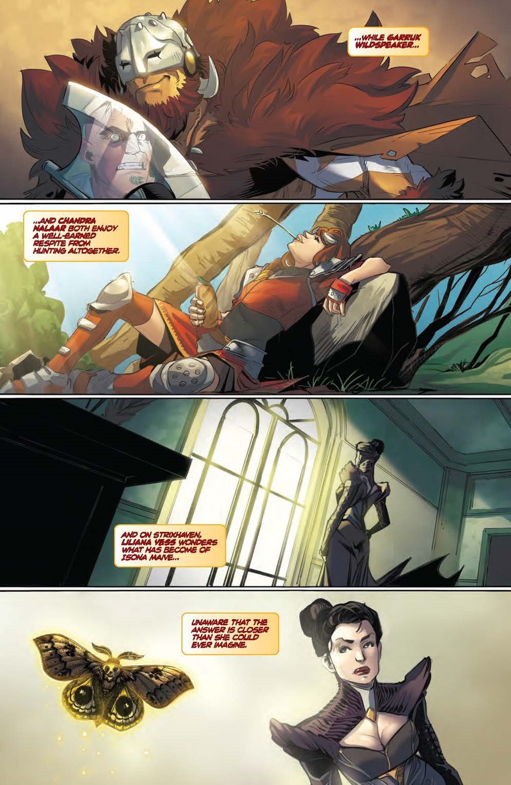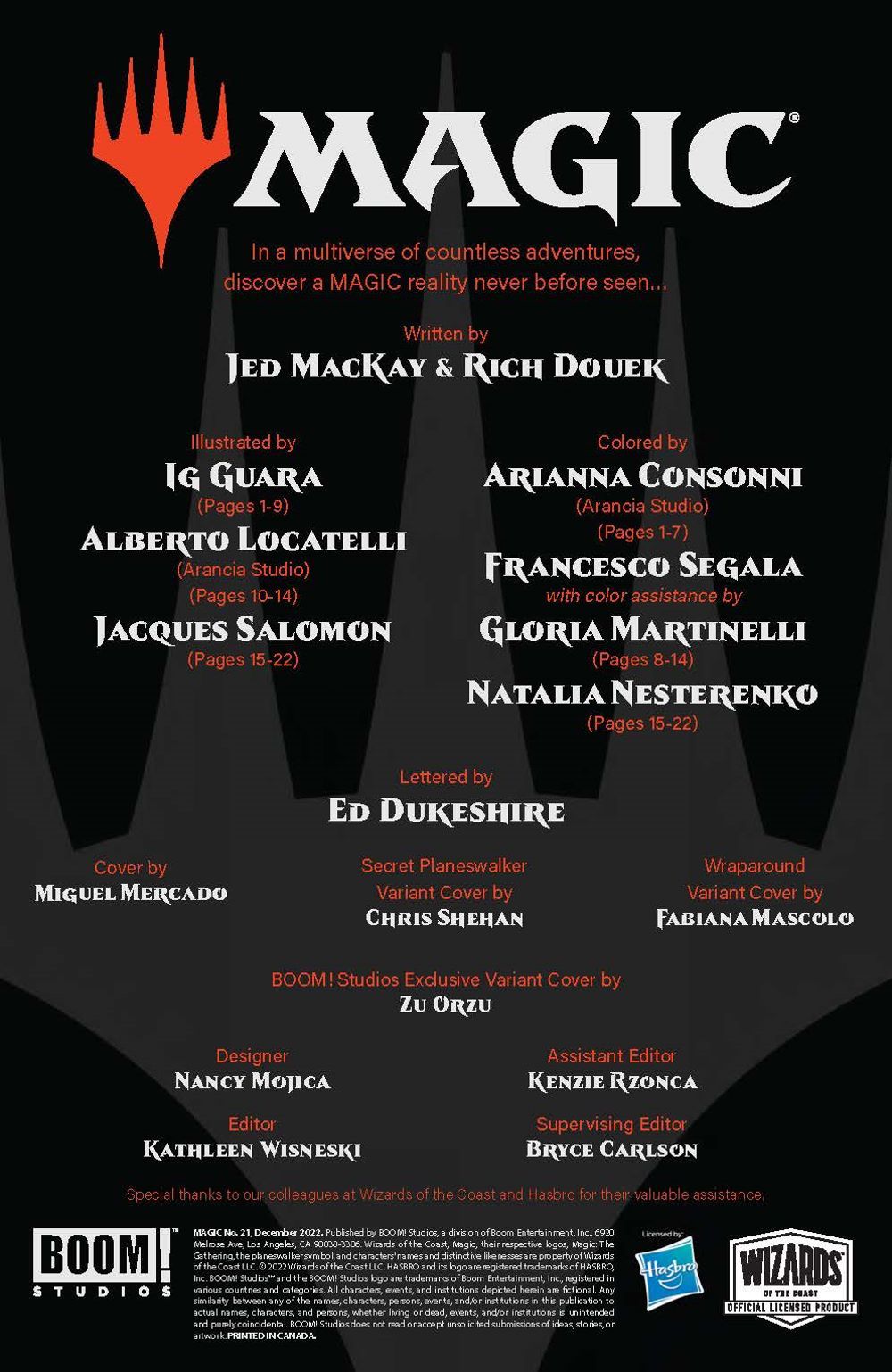 NEW STORY ARC. Rich Douek (Superman Red & Blue) joins series writer Jed MacKay (Moon Knight) for the next monumentally MAGIC story arc! While our planeswalker heroes enjoy a time of relative peace and happiness that they (and readers!) have thirsted for, threats from their past refuse to rest… With a villain ready to pull at the seams of the multiverse, will the wildcard planeswalker entering the story help Jace, Vraska, Ral, Kaya, Niko, Chandra, Garruk, and Liliana, or is chaos in store? Get ready for an all new era of MAGIC, and a story that will change the fate of the Multiverse itself!