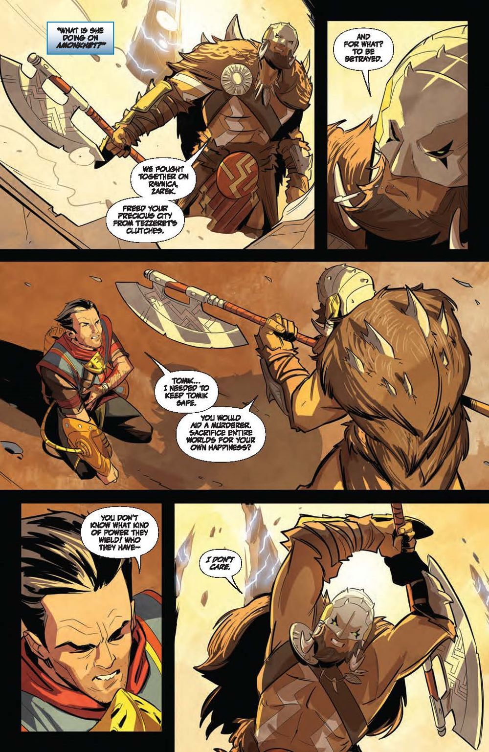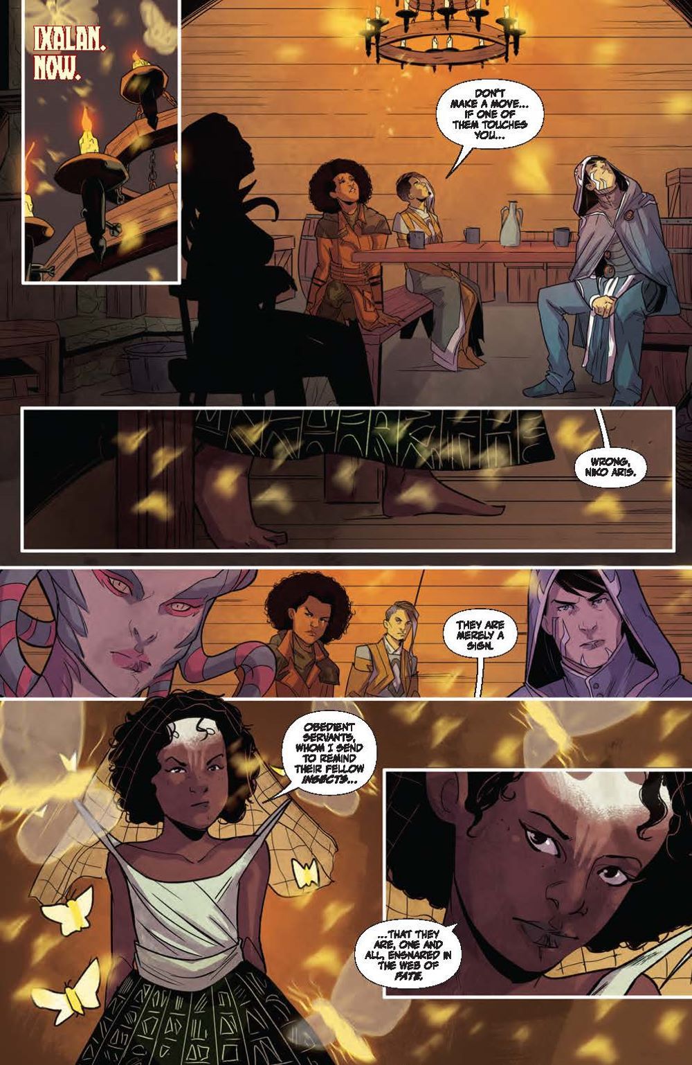 As the grand finale to the saga unfolds, the aftermath of the events on Amonkhet leave Liliana, Garruk, and Chandra vulnerable to Marit Lage's influence–making each a potential threat to the others! But what do Isona and Nicol Bolas' capabilities mean for Aminatou's plans for the multiverse? The answers await all the surviving Planeswalkers on Dominaria!