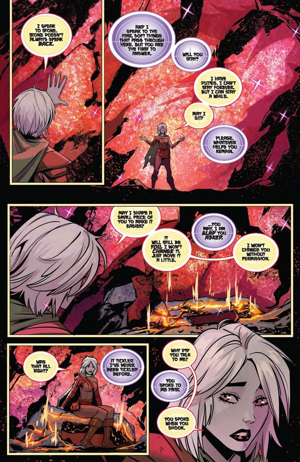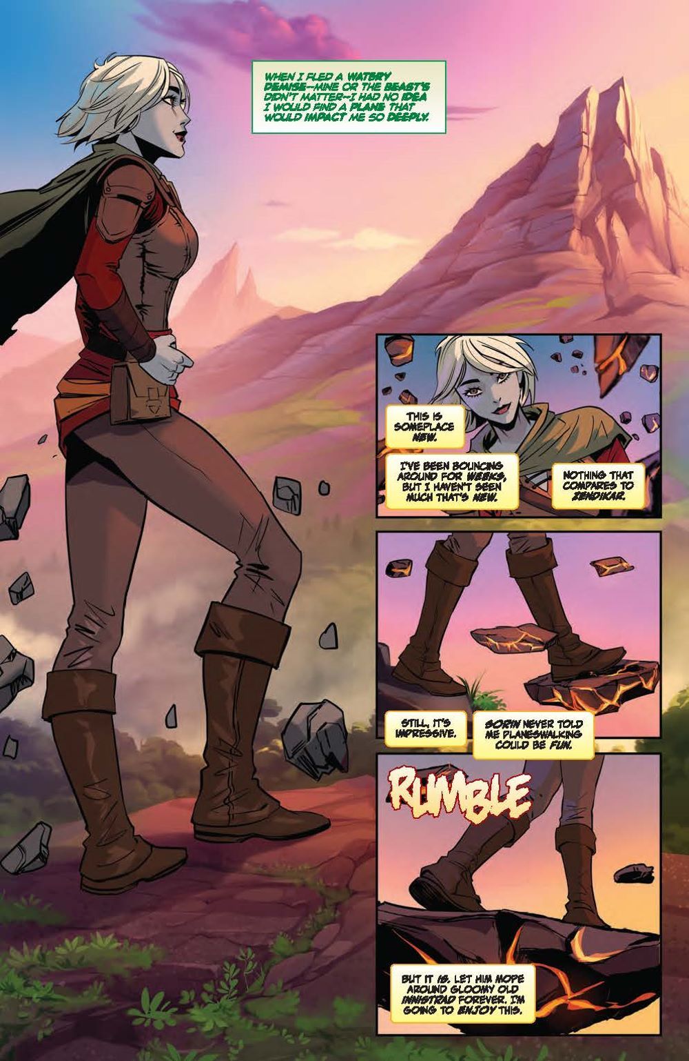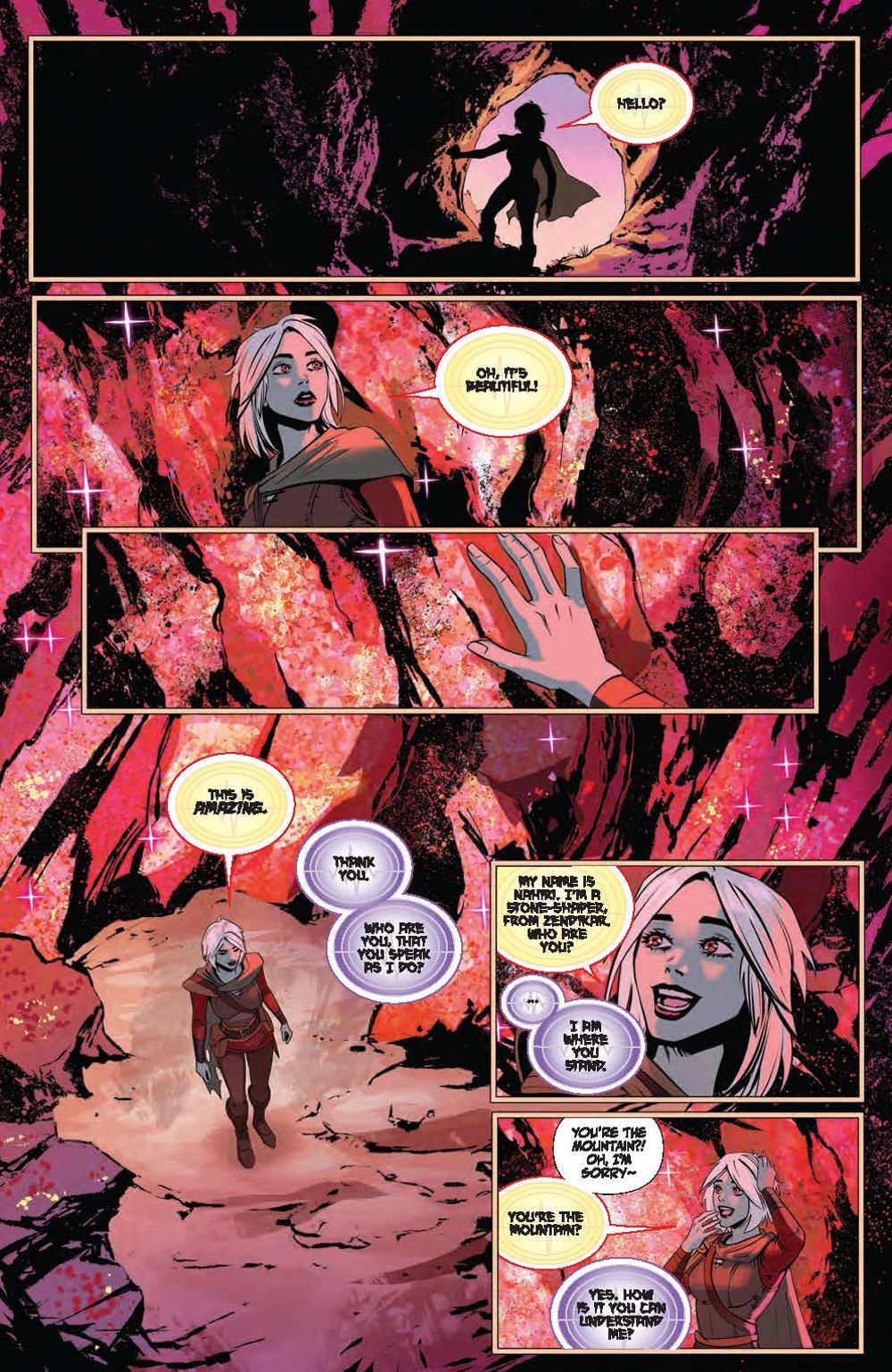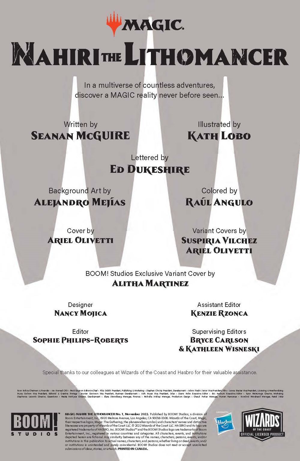 SPECIAL ISSUE. Nebula, Hugo, Locus, and Alex Award-winning novelist Seanan McGuire (Ghost- Spider) returns to the world of Magic: The Gathering with artist Fabiana Mascolo (Firefly, Cyberpunk 2077: Blackout) to bring Nahiri the Lithomancer to comics! Nahiri–also known as The Harbinger–has protected her home plane of Zendikar for centuries, her ruthlessness and terrible deeds kept in check by a strong sense of justice. But her fate is far from decided, and a new challenge awaits that may change the way the entire Multiverse perceives her…