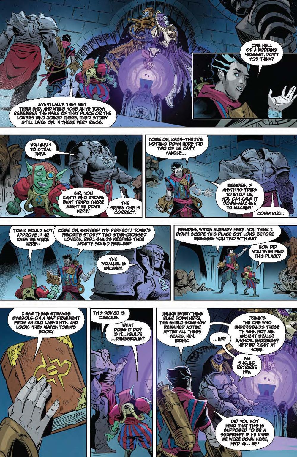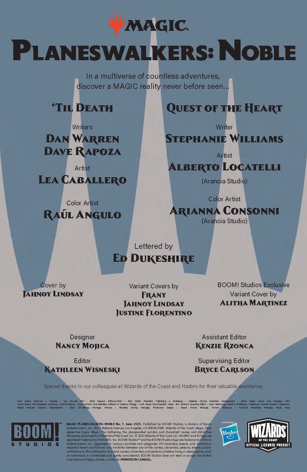 SPECIAL ISSUE. The first of a series of Planeswalker team-ups in the spirit of Marvel Team-Up! Planeswalkers Karn and Ral Zarek team up to navigate the lonely and often treacherous space between flesh and machine… Meanwhile, a romantic outing featuring Jace and Vraska? The circumstances are less than ideal, however, and even perilous! Between fan-favorite pairings and unexpected, exciting alliances, the stellar creative team of Stephanie Williams (Nubia: Queen of the Amazons), Daniel Warren and Dave Rapoza (Steve Lichman), Alberto Locatelli, Lea Caballero, Arianna Consonni, and Raúl Angulo take readers to unforgettable realms in the Magic Multiverse!