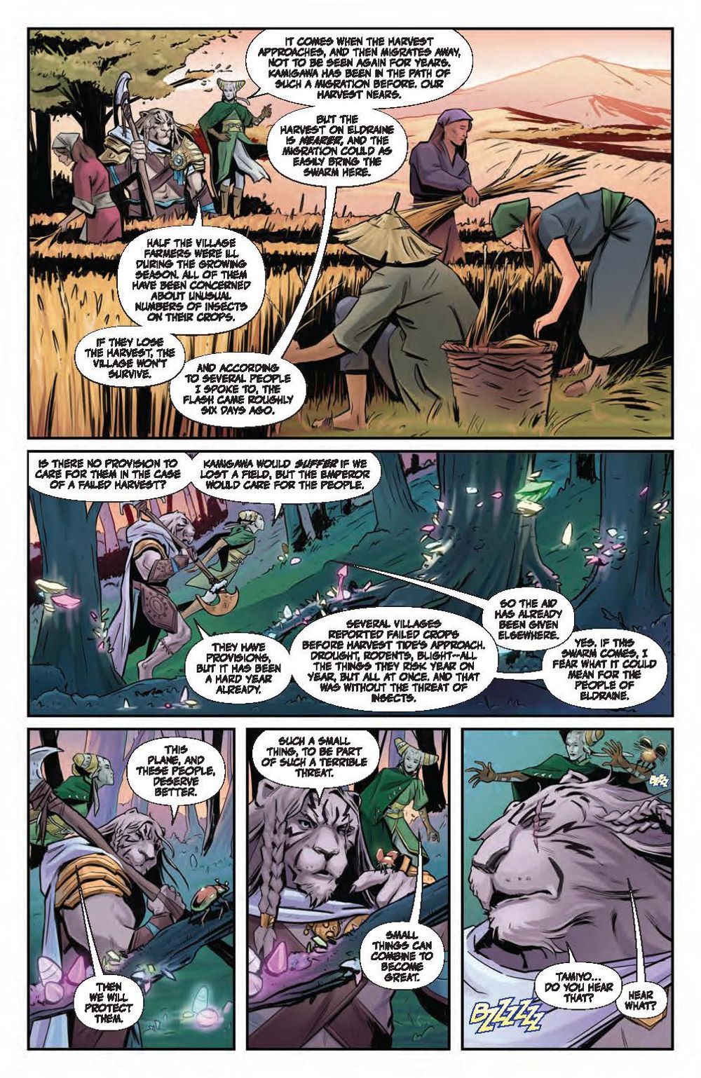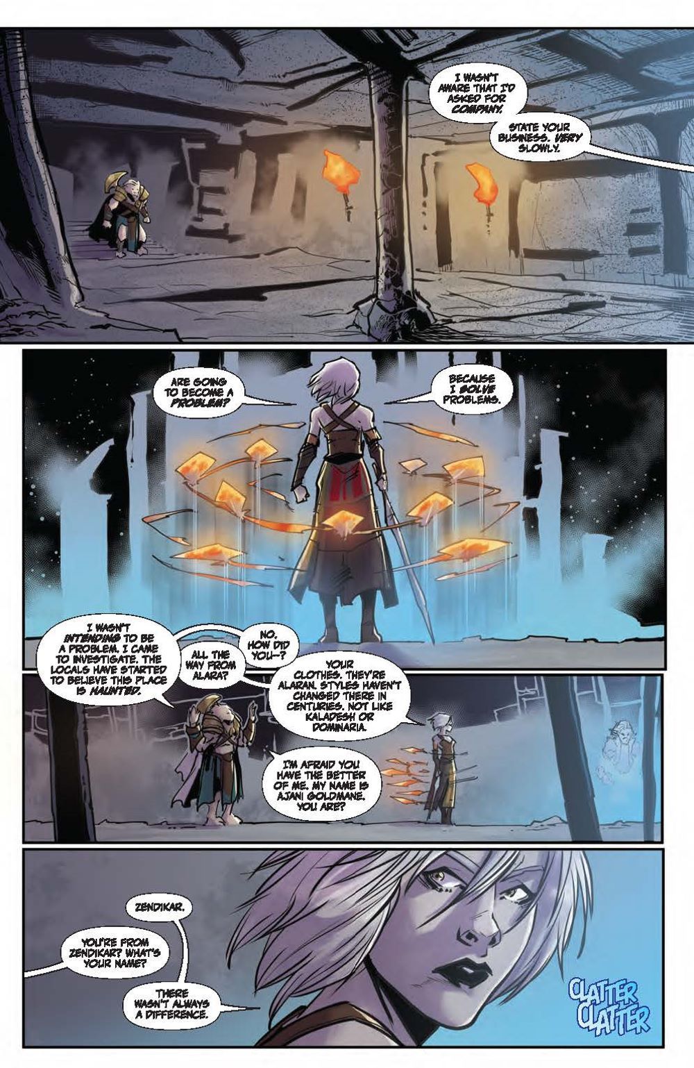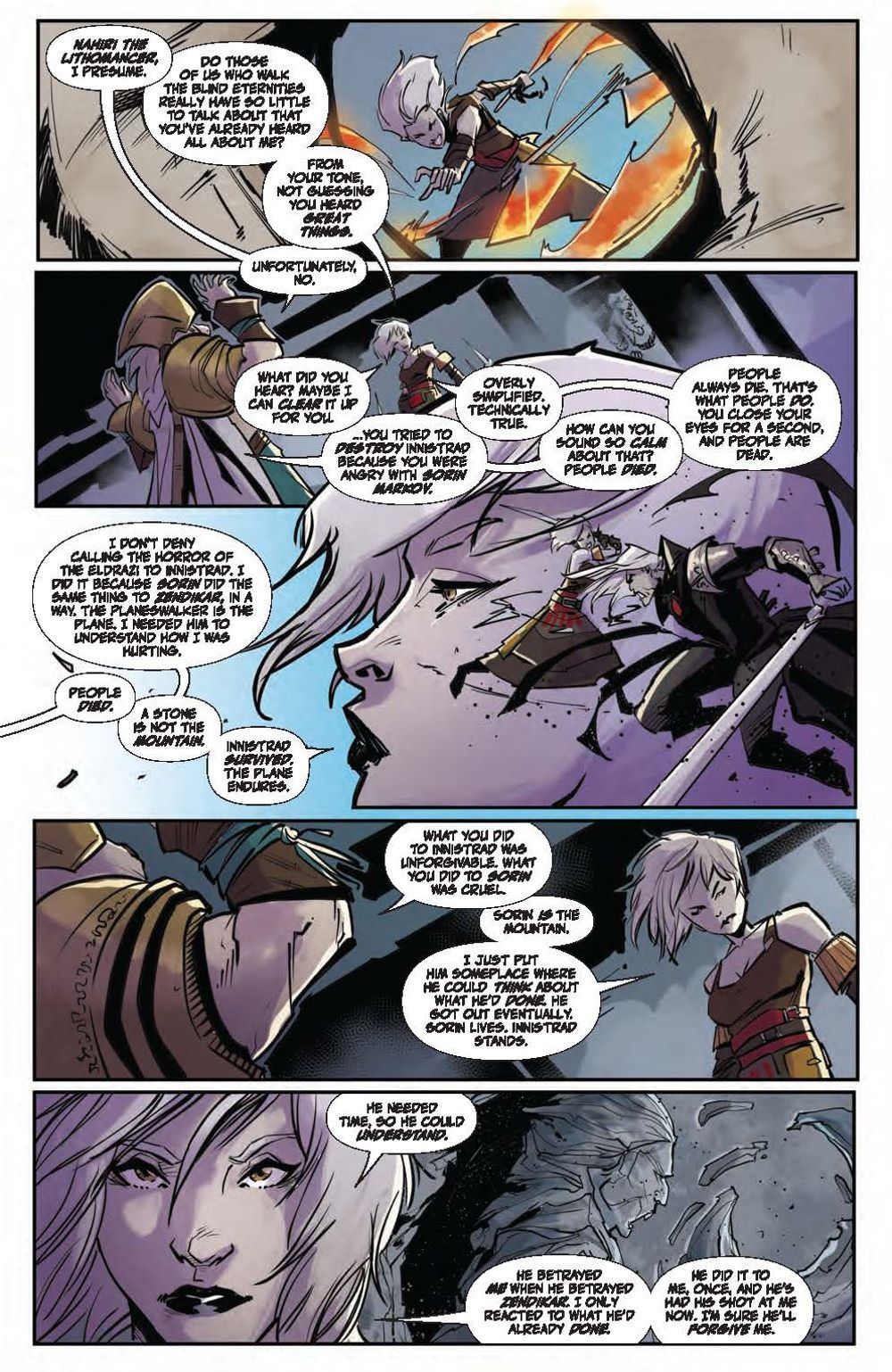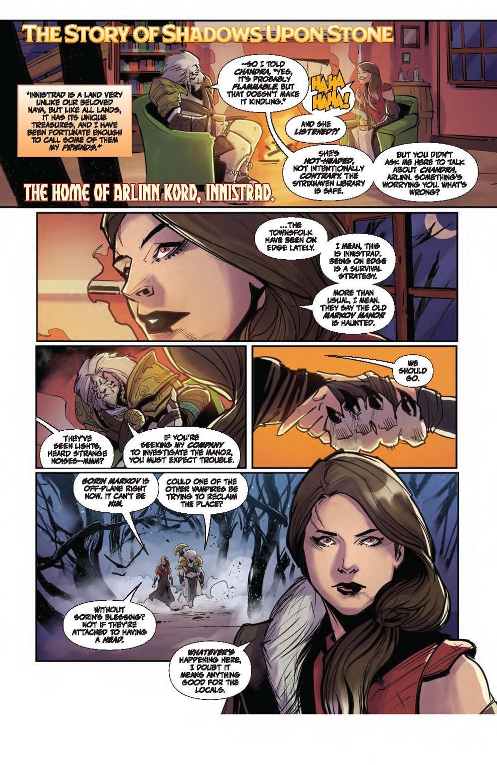 In this deluxe hardcover collection, experience two standalone tales each spotlighting a beloved Magic: The Gathering character. First, delve into Ajani Goldmane's past adventures and uncover stunning surprises, including what happened when the steadfast, valiant protector faced threats beyond his capabilities! Meanwhile, Nahiri has protected her home plane of Zendikar for centuries, her ruthlessness and power kept in check by a strong sense of justice. But a new challenge awaits that may change the way the Multiverse perceives her… Nebula, Hugo, Locus, and Alex Award-winning novelist Seanan McGuire (Ghost-Spider) returns to the world of Magic: The Gathering with artists Kath Lobo (Go Go Power Rangers), Jacques Salomon (Lovecraft: Unknown Kadath), Giuseppe Cafaro (Red Sonja), Lea Caballero (Just Beyond), and Michael Shelfer (The Vampire Slayer) to bring Ajani Goldmane and Nahiri the Lithomancer to comics! Collects Magic: Ajani Goldmane #1 and Magic: Nahiri the Lithomancer #1.