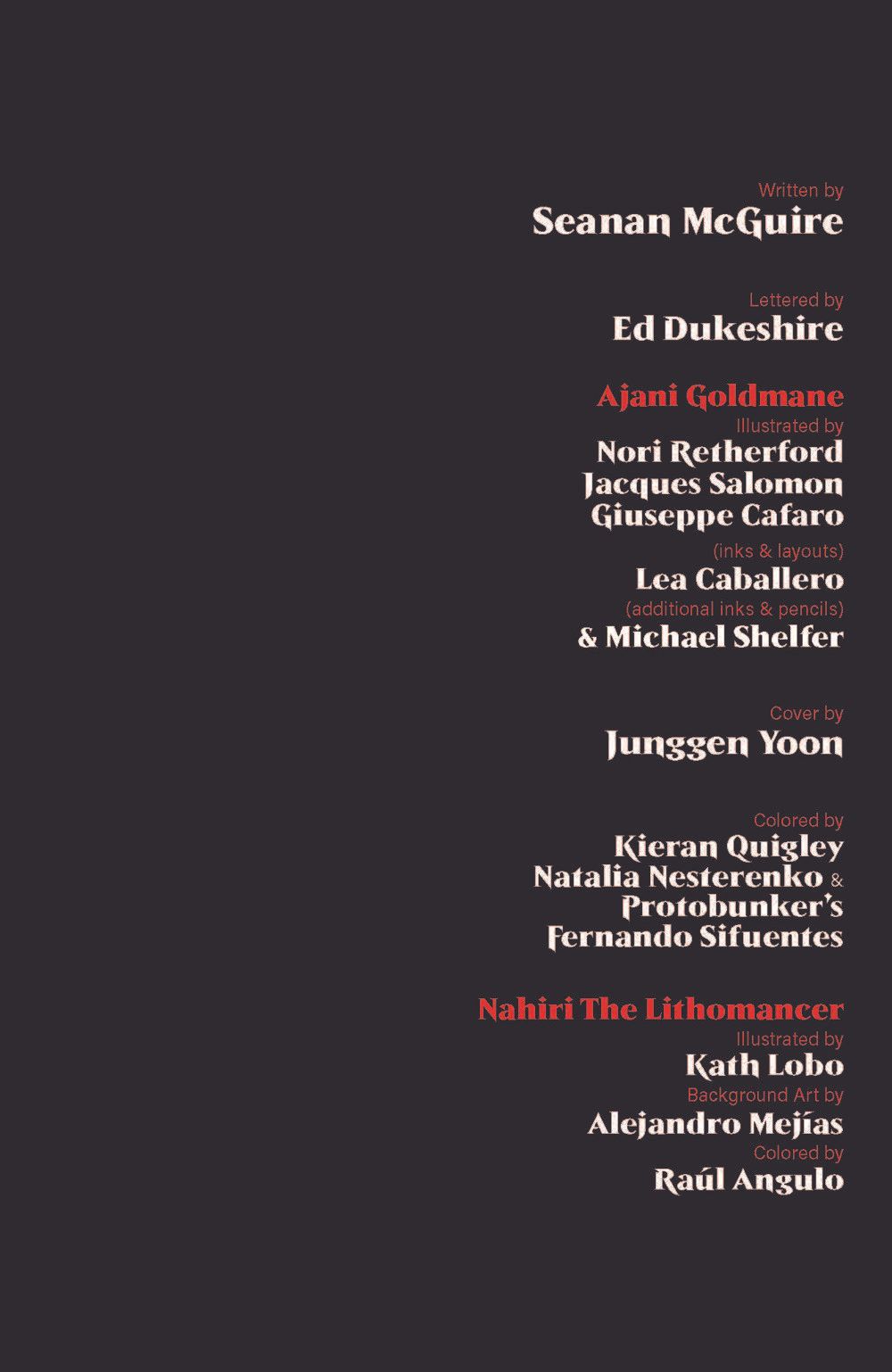 (W) Seanan McGuire (A) Kath Lobo, Lea Caballero, Giuseppe Cafaro, Nori Retherford, Jacques Salomon, Michael Shelfer (CA) Jung-Geun Yoon