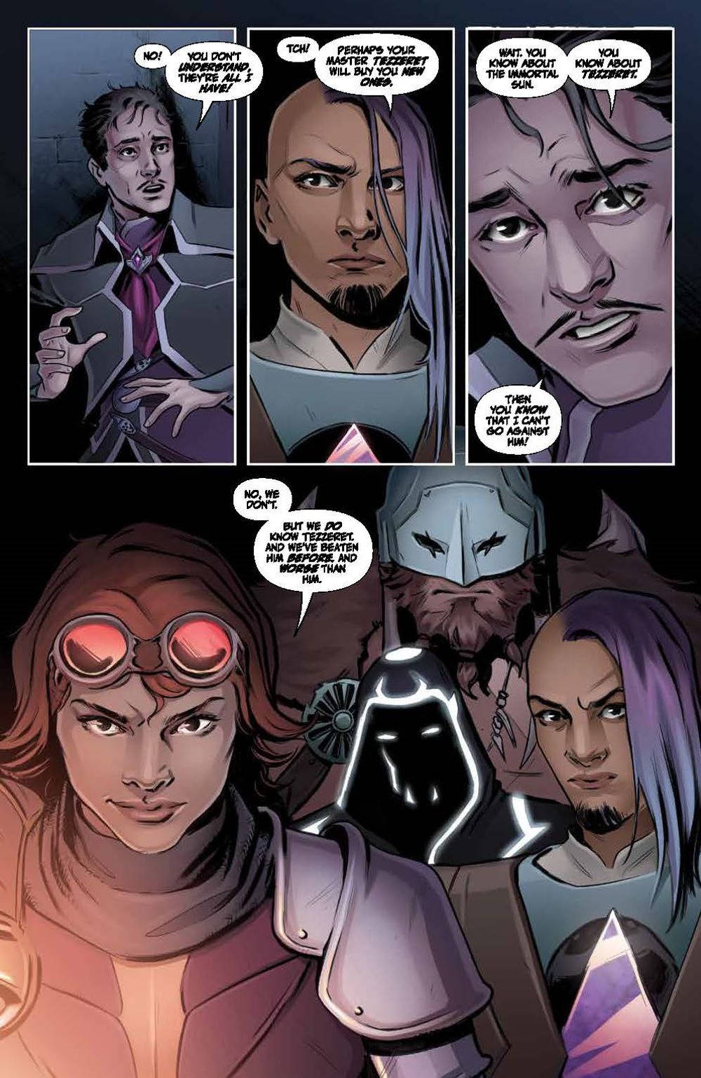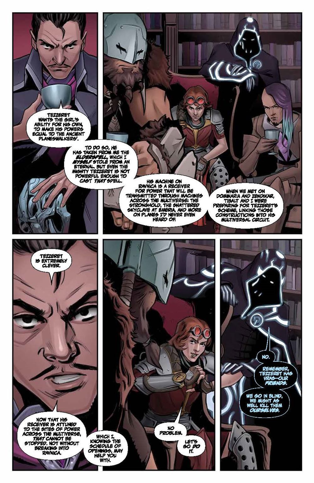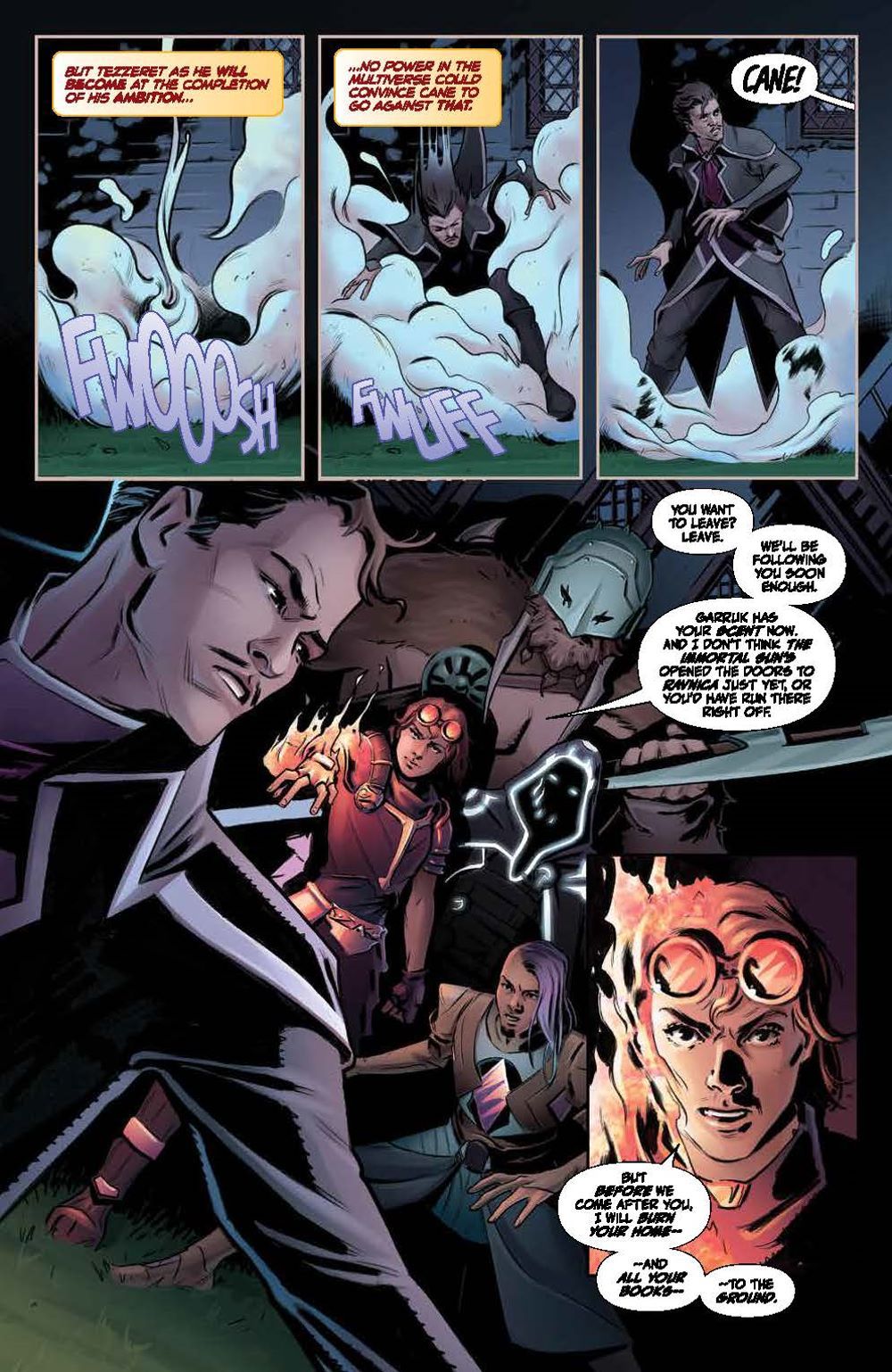 In Ravnica, the Metal Mage reigns as a shadowy dictator, while Vraska, Ral Zarek, and Kaya are trapped and depowered. But despite Ravnica being seemingly unreachable, unlikely help may be on the way! If Chandra, Niko, and Garruk want to succeed in freeing the former Guildmasters from Tezzeret's sadistic prisons…they'll have to face a challenge that no one could have predicted! And far away… another infamous Planeswalker seeks the powers of fate to make their own… The fourth arc of Magic from writer Jed MacKay (Moon Knight), artist Ig Guara (Edge of Spider-Verse), colorist Arianna Consonni, and letterer Ed Dukeshire reaches a fever pitch as the Battle of Ravnica reaches it's monumental conclusion! Collects Magic #16-20.