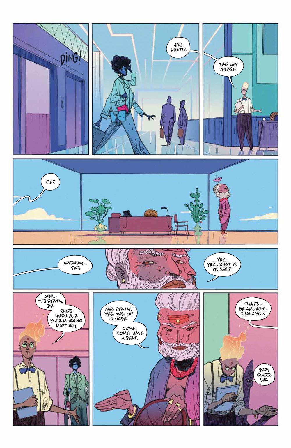 Humanity is on the verge of discovering immortality. As a result, the avatar of Death is cast down to Earth to live a mortal life in Mumbai as twenty-something Laila Starr. Struggling with her newfound mortality, Laila has found a way to be placed in the time and place where the creator of immortality will be born. Will Laila take her chance to stop mankind from permanently altering the cycle of life, or will death really become a thing of the past? A powerful new graphic novel from award-winning writer Ram V (These Savage Shores, Swamp Thing) and artist Filipe Andrade (Captain Marvel) that explores the fine line between living and dying through the lens of magical realism. Collects The Many Deaths of Laila Starr #1-5.