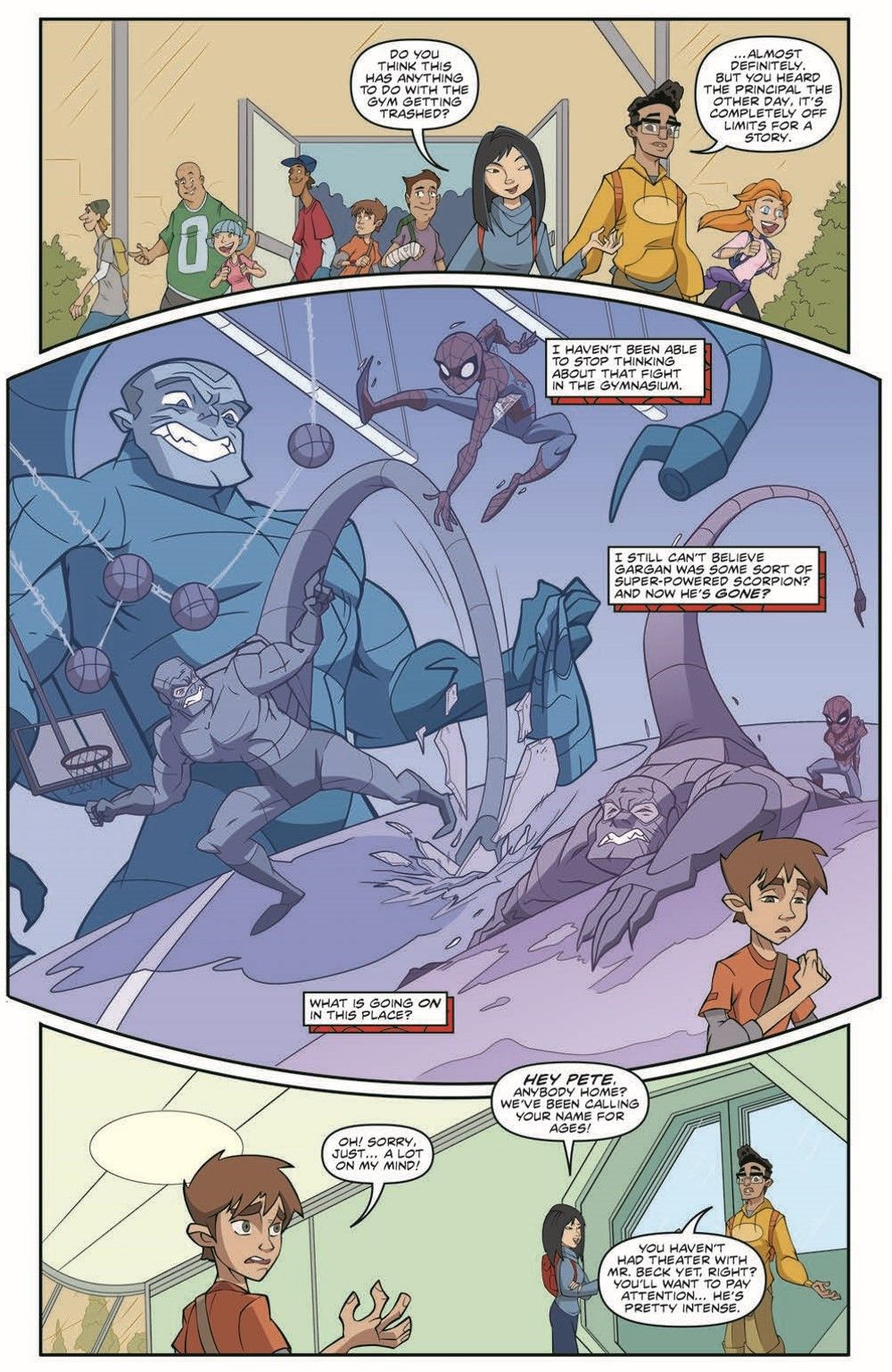 As Peter and his friends dive deeper in the mysterious happenings at the Oscorp Charter School of Technology, a dangerous new foe is about to strike—and when they do, it'll be even worse than a surprise calculus exam in this adventure from writers Sarah Graley & Stef Purenins (Donut the Destroyer) and artist Philip Murphy (Star Trek vs. Transformers, Powerpuff Girls).
