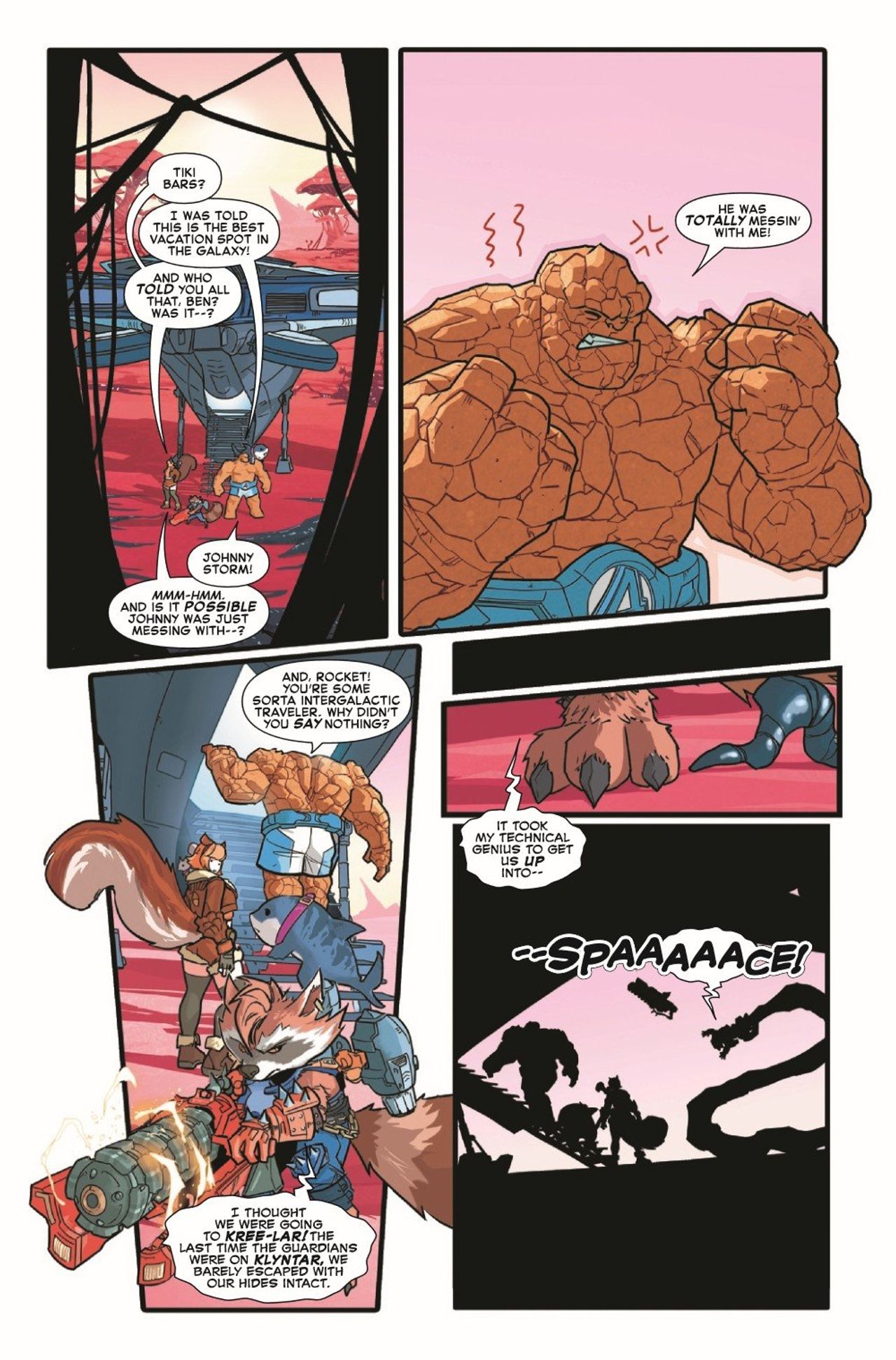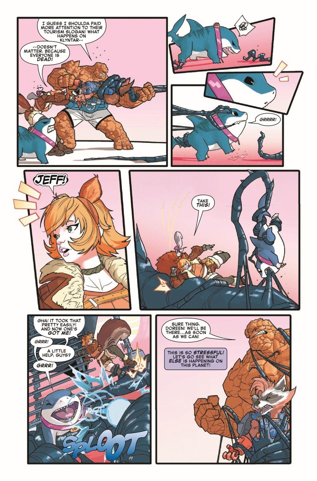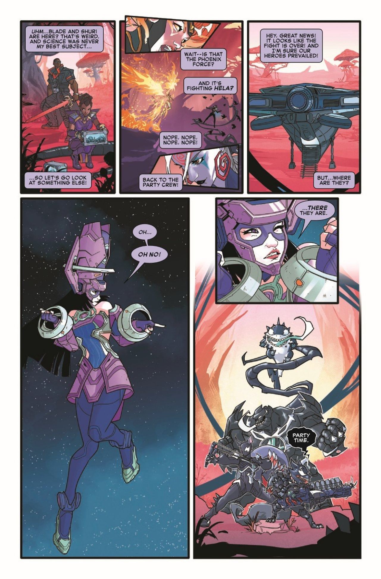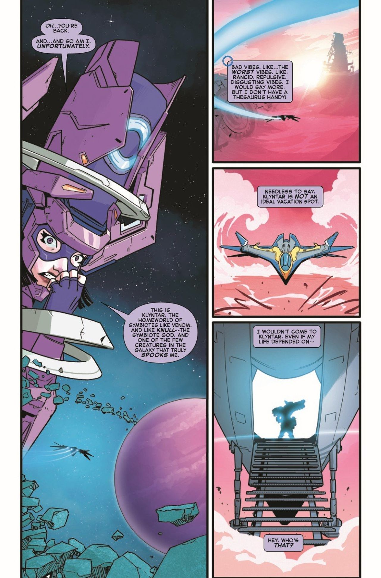 KLYNTAR KILLS! When a galactic vacation goes awry, our beloved heroes - Jeff, Rocket Raccoon, Thing and Squirrel Girl - find themselves on the symbiotic shores of Kylntar, home of the symbiotes! As allies are transformed, their darker halves join the side of the symbiote-bonded Hela, and her growing symbiotic army! Only two heroes are capable of defeating this growing menace: Blade and Phoenix! But with their forces scattered, can the daywalker and the mutant psychic pull their friends out of this Klyntarian nightmare? Presenting the Marvel Rivals Infinity Comic #13-18 for the first time in print!