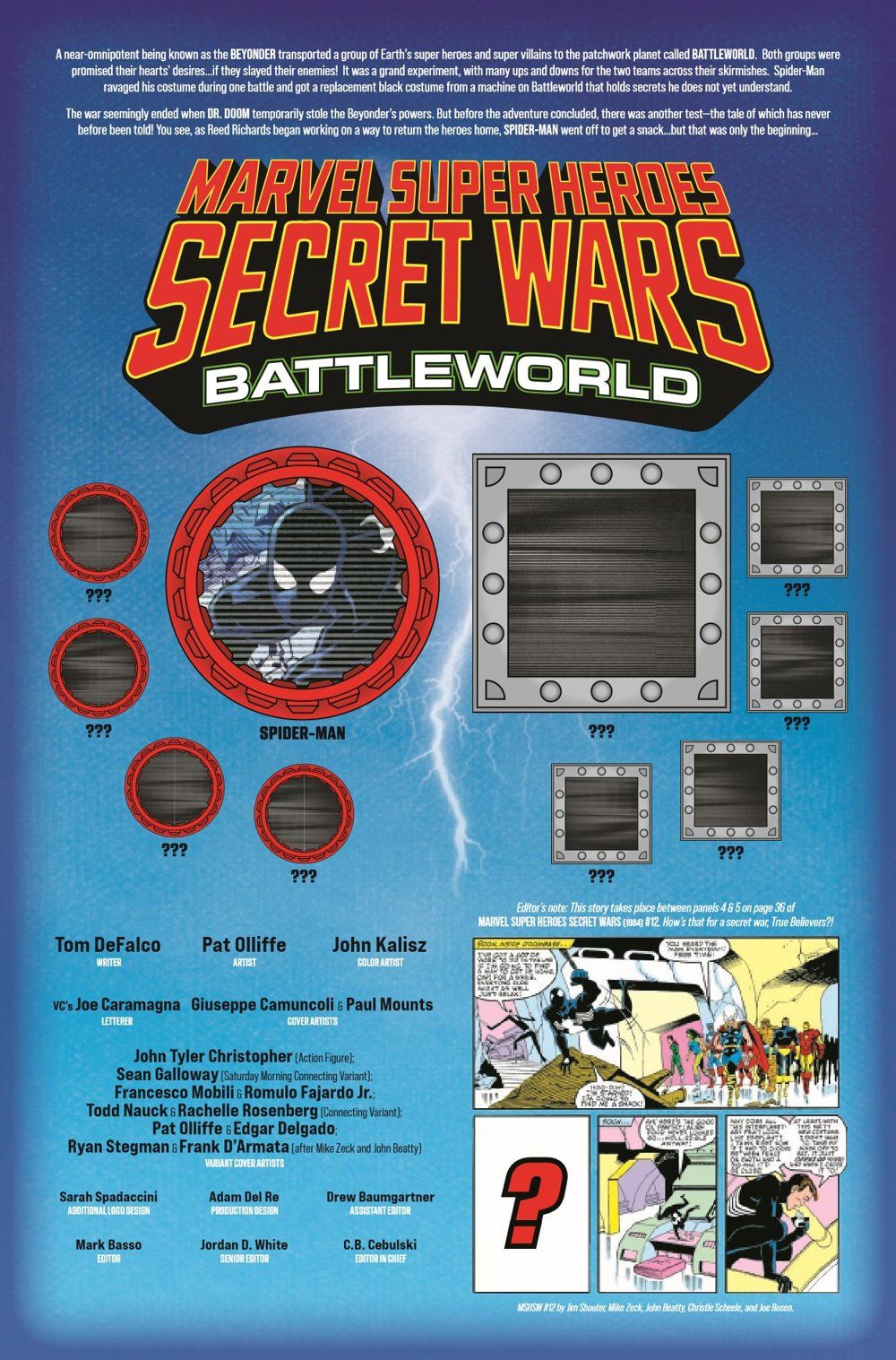 AFTER NEARLY FORTY YEARS, THE MYSTERIES OF THE SECRET WARS DEEPEN! Get ready for an ALL-NEW cataclysmic battle from when SPIDER-MAN first got his ALIEN COSTUME, when a mysterious being called the BEYONDER assembled super heroes and villains from Earth to do battle on a patchwork planet - yes, witness now an untold adventure set during the original SECRET WARS! MARVEL SUPER HEROES SECRET WARS set the standard for Marvel Comics events (as well as action figures and the characters existing on the forefront of pop culture), and this new story will at last reveal some secret connections and MISSING CHARACTERS going back to the 1984 original series, just in time for its 40th Anniversary! What SECRET TEST are the BEYONDERS conducting…and how will SPIDER-MAN, the HUMAN TORCH and the whole cast determine the fate of the universe? (PLUS: Surprise super-villain appearances inside!)
