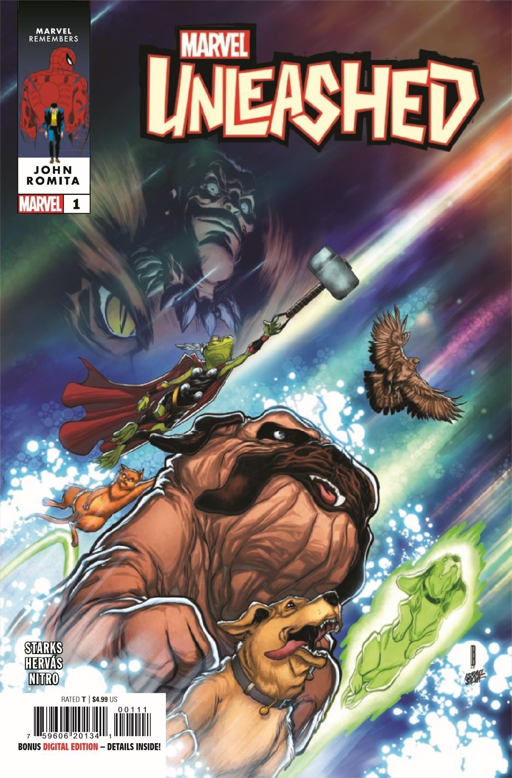 KRAVEN UNLEASHES THE BEASTS! When Kraven abducts Lockjaw at the same time a local scientist mixed up with A.I.M. goes missing, it's up to Throg the Frog of Thunder, Redwing the Falcon, Chewie the Cat Flerken, Lucky the Pizza Dog, Bats the Ghost Dog and their scrappy new ally D-Dog to save the day. But there's more to this case than meets the eye, and something infernal lurks in the shadows. Can feathers, fangs and claws stand against one of the deadliest foes in the Marvel Universe?