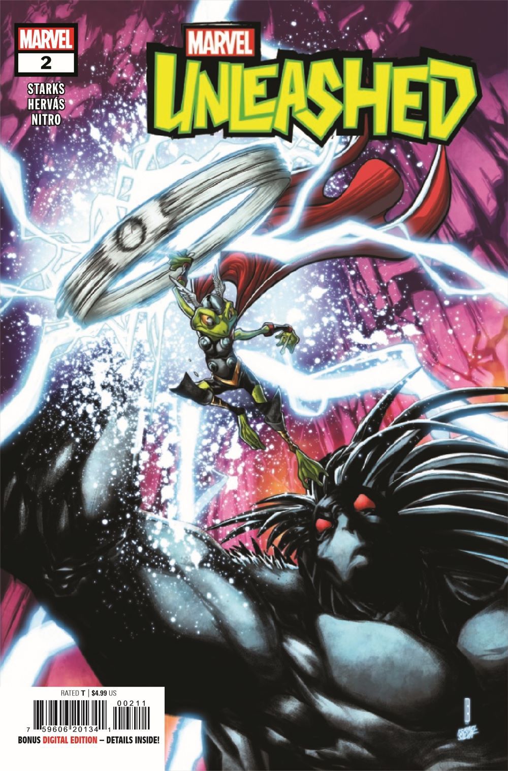 When Kraven gets the better of Redwing and Chewie, it's up to Bats and D-Dog to find Throg and enlist his help in rescuing them. But even a God of Thunder might not be strong enough to defeat Kraven's employer - Blackheart, son of Mephisto!