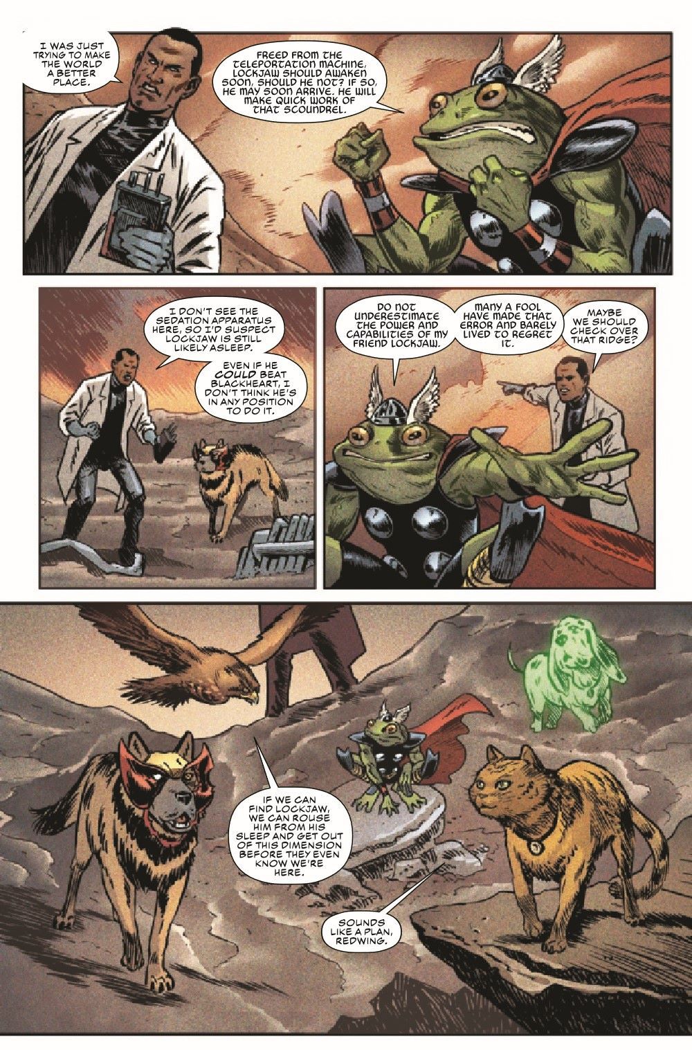 Just when Throg, Redwing, Chewie, Falcon, Bats and D-Dog think they've escaped Blackheart's clutches, they find themselves caught in something much worse - their own personal nightmares! Can they snap themselves out of it before their foe's return?
