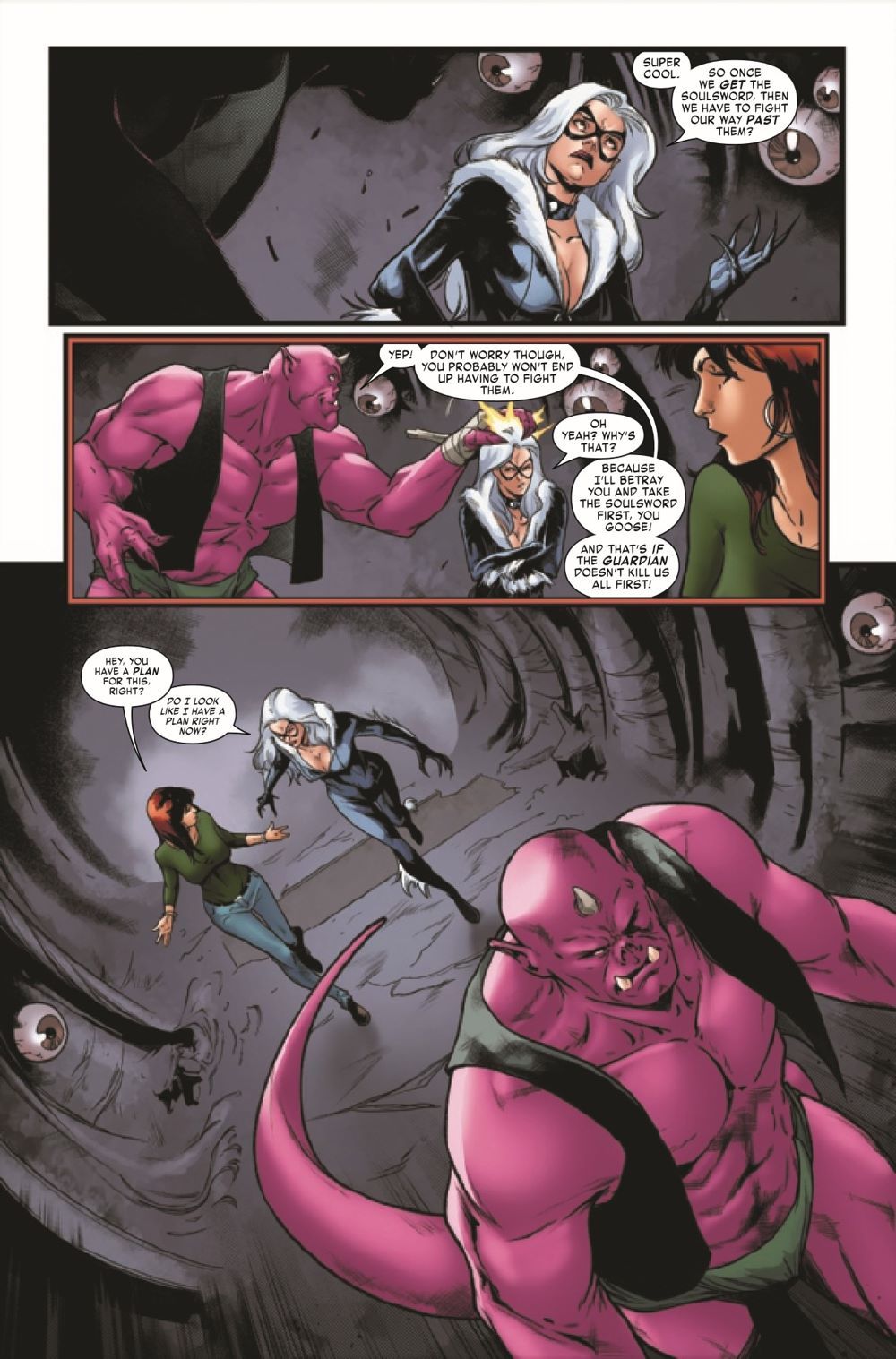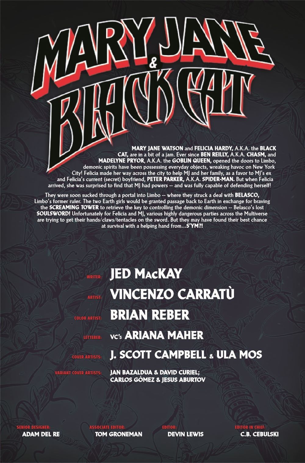 Mary Jane Watson and Felicia Hardy are trapped in Limbo by BELASCO - and if they wanna escape, they'll have to heist their way out! A shaky alliance with an unexpected ally may be their only hope to survive the SCREAMING TOWER. But MJ's holding back…What is the true price of her new supe-powers? And why can't Black Cat come clean about the new (old) man in her life? These truths may damn their friendship…and their souls…to Limbo forever!