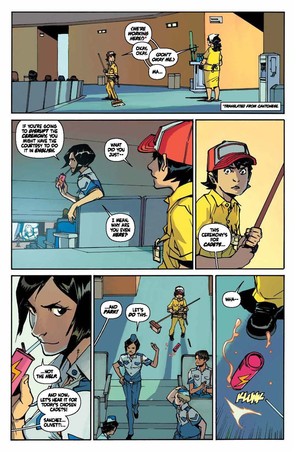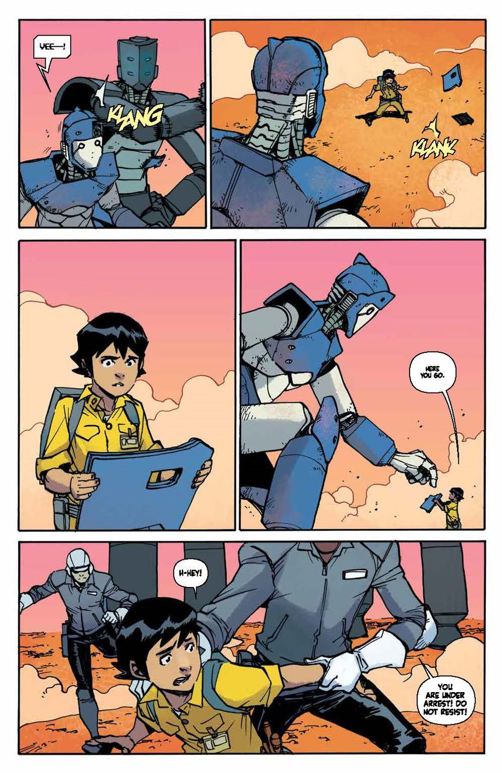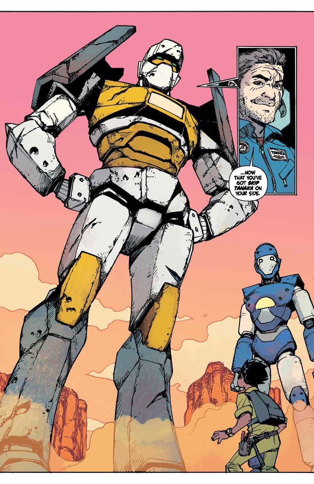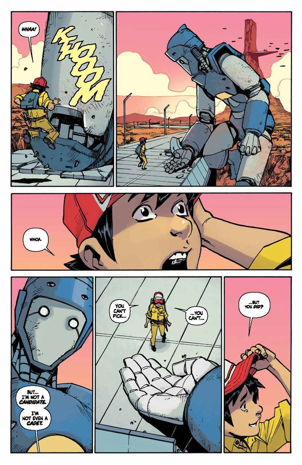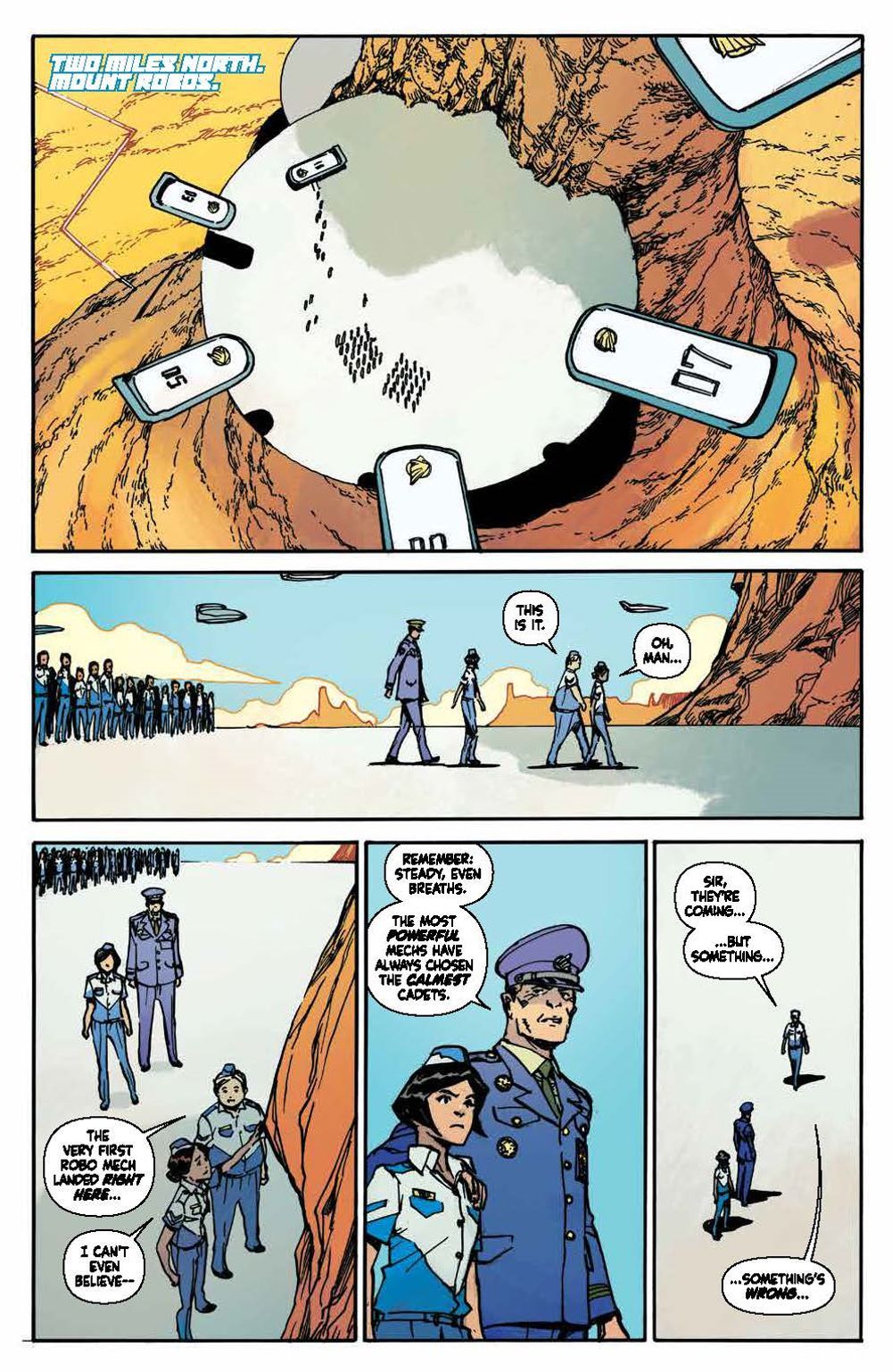 Every four years, giant sentient robots from outer space come to Earth and bond forever with a brand new crop of Sky Corps Academy cadets. But this time, instead of a cadet, one mech bonds with Stanford Yu, a young kid working with his mom as a janitor at Sky Corps. This is the opportunity of a lifetime for Stanford, but first he'll have to earn the trust of his classmates and survive an uncompromising enemy…the Sharg!. Bestselling author Greg Pak (Ronin Island, Planet Hulk) and fan-favorite artist Takeshi Miyazawa (Runaways, Ms. Marvel) bring to life this underdog story as Stanford and the newest team of Cadets and Robos face relentless training, an alien invasion, and the threat of losing themselves and human existence. They'll realize the true sacrifice that comes with duty and service and what makes a hero in this full collection of Mech Cadets perfect as a jumping on point ahead of the animated series on Netflix! Collects Mech Cadet Yu #1–12.