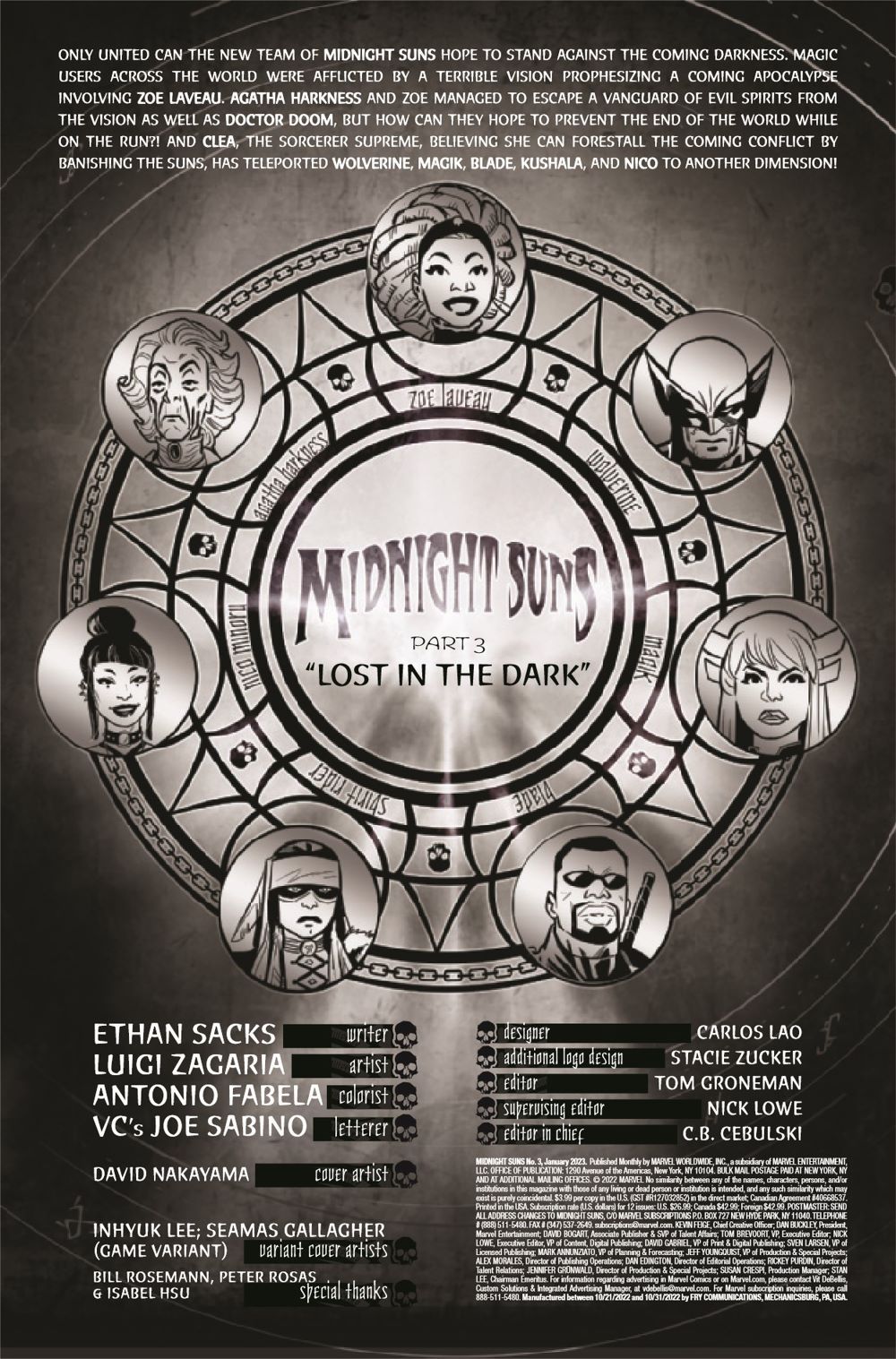 Beware the Vapors of Valtorr! The MIDNIGHT SUNS brave the darkest and most horrifying journey imaginable to secure aid from one of the most ancient and dangerous beings in all of existence. What terrible secret from the past is AGATHA HARKNESS hiding? And what does the truth mean for ZOE LAVEAU's future?!