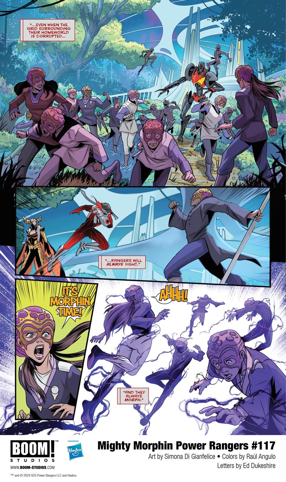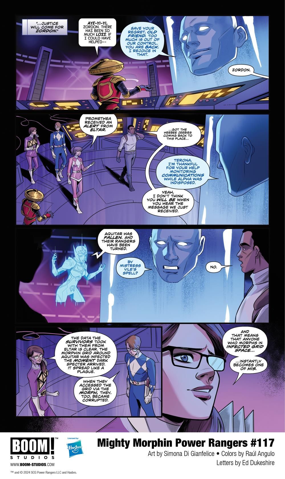 Things are desperate on Earth as Mistress Vile attacks, with Rangers from different universes and civilians alike teaming up to keep the carnage at bay, but some special objects may be the key to keeping the planet safe… even if it won't last for long. As Billy and the HyperForce Rangers rush to repair the Master Arch, they're only able to pull a single ally from the heart of the Morphin Grid as Dark Specter's power grows…