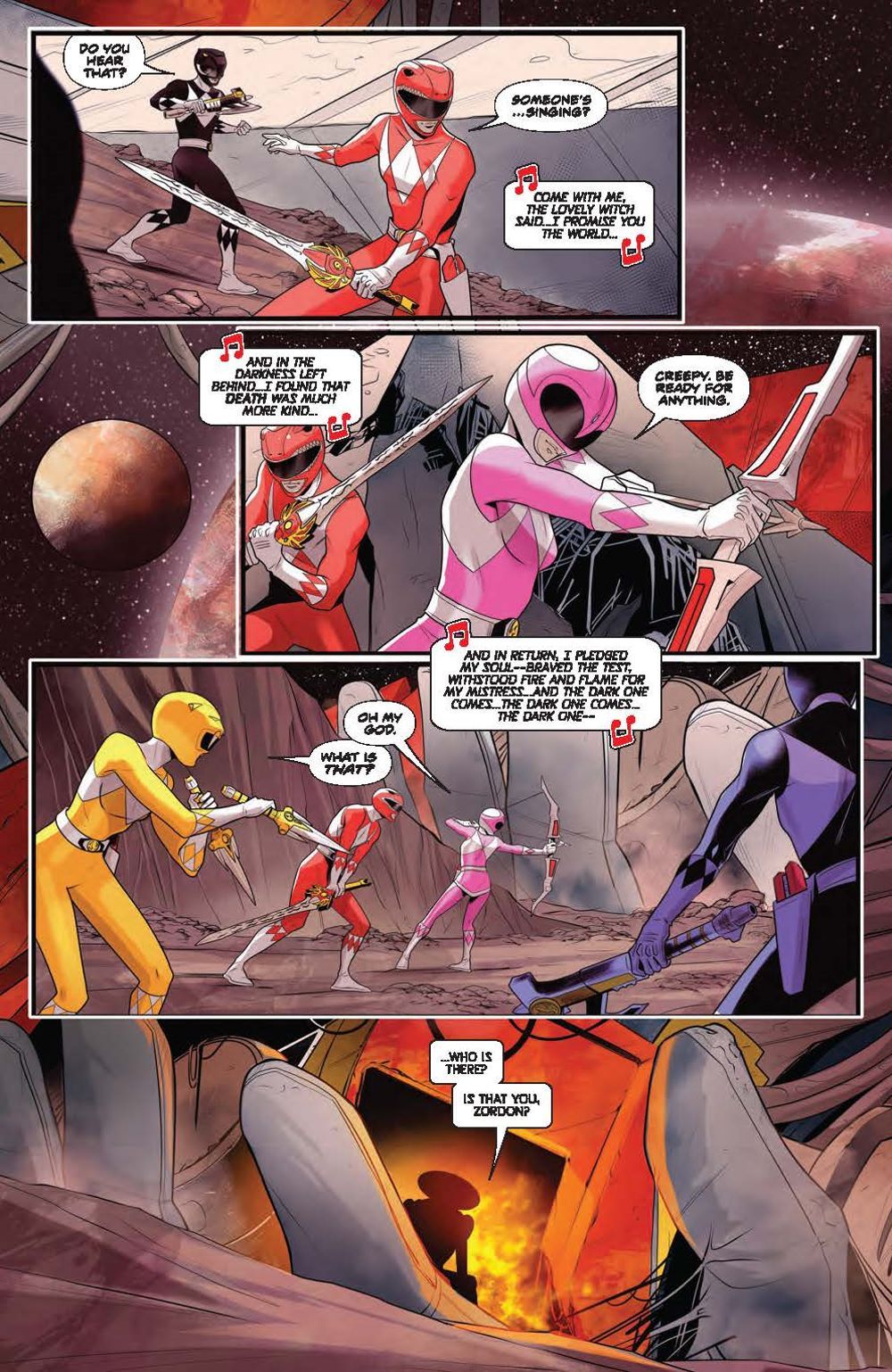 In dreams of the distant past and the battle for Earth and the Moon, new revelations about Zedd, Zordon, and Rita are uncovered. While the Rangers debate their priorities and the fate of their captured friend, an agent of their enemies awaits them— one of an evil presence that’s all too familiar! Meanwhile, Rita Repulsa (a.k.a. Mistress Vile) ramps up her pursuit of a special prize for Dark Specter— one that he won’t be able to resist. With new allies and an all-too-familiar minion, will the Morphin Grid manage to withstand Mistress Vile’s onslaught? Writer Melissa Flores (The Dead Lucky), artist Simona Di Gianfelice (Firefly), and colorist Raúl Angulo (Buffy the Vampire Slayer), along with guest artist Kath Lobo (Go, Go, Power Rangers!) and colorist Fabi Marques (Batman: The World), continue this bold new era of Mighty Morphin Power Rangers! Collects Mighty Morphin Power Rangers #103-106.