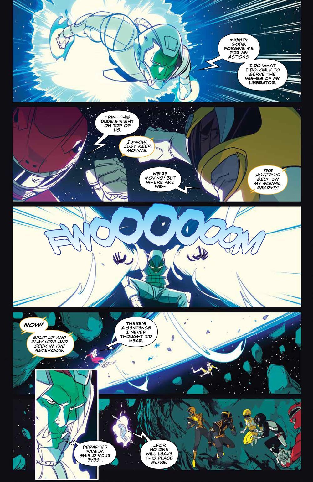 The Mighty Morphin Power Rangers and the all-new Omega Rangers have joined forces, but even the shocking return of The Ranger Slayer may not be enough to defeat Dayne, Kiya and the full power of the Anointed! It's final fight for the fate of the Power Rangers as friends new and old join forces against their greatest enemy yet! New York Times bestselling author Ryan Parrott and artist Daniele Di Nicuolo conclude the epic Power Rangers: Necessary Evil event with a final page shocker no Power Rangers fan can afford to miss. Collects Mighty Morphin Power Rangers #48-50.