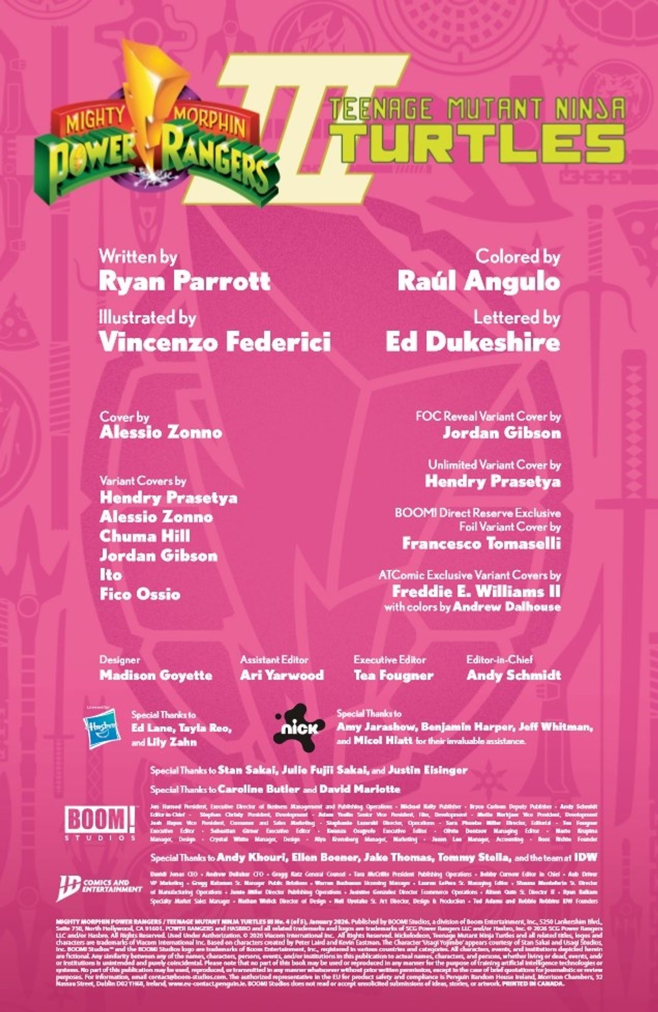 This penultimate issue sets the stage for a thrilling final battle that could change everything! When Super Zedd destroys a landmark of deep significance, it seems that all is lost for the Rangers and Turtles. And with their forces divided between dimensions, our heroes are left fighting a war on multiple fronts that's beginning to seem hopeless…With everything hanging in the balance, can a mysterious visitor be the key to their survival?