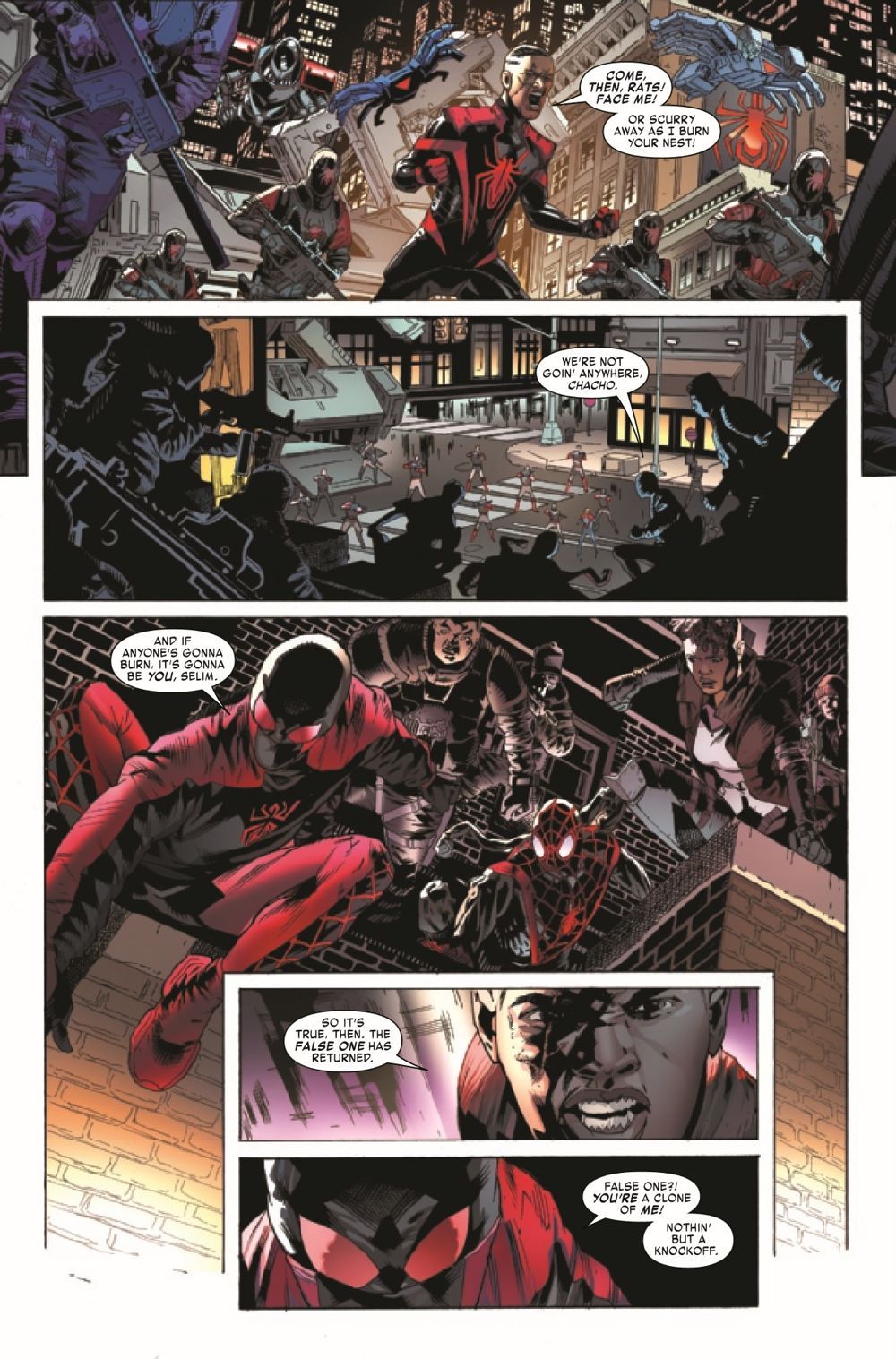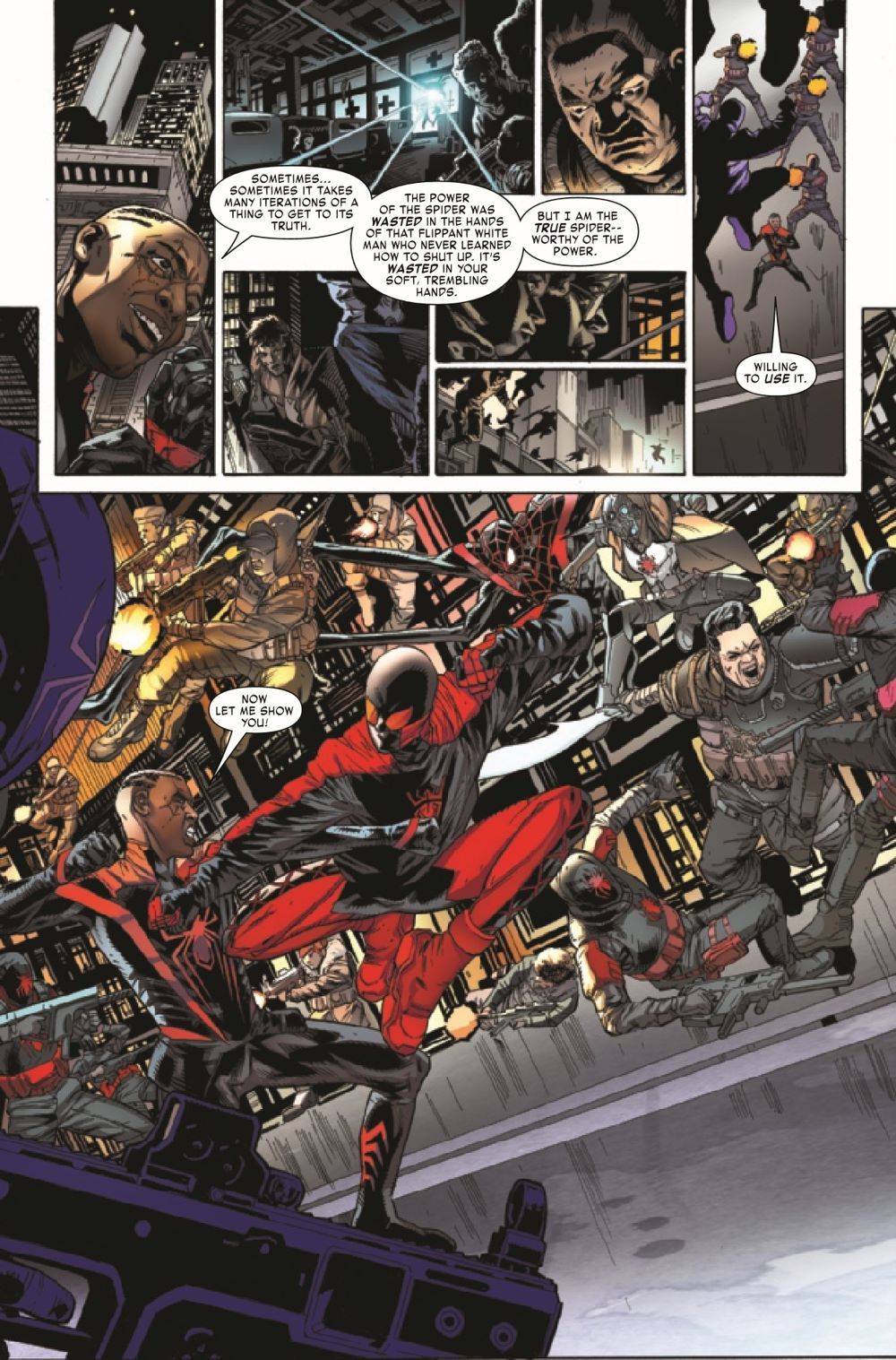 SELIM'S EMPIRE STRIKES BACK! The full might of the EMPIRE OF THE SPIDER bears down on Miles Morales' small band of resistance fighters. For Miles, their one chance for victory will only come at a great cost - but is SPIDER-MAN prepared to pay it? And what does the future hold for BILLIE MORALES?!