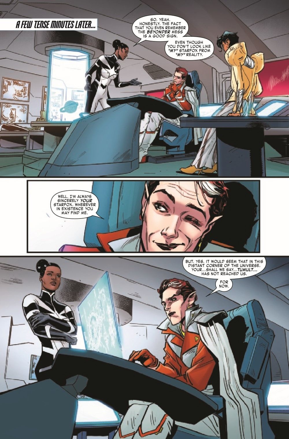 IS THIS THE END FOR MONICA RAMBEAU? Monica is pretty sick of navigating topsy-turvy fractured realities and their strange denizens — who keep insisting she's the problem! Unfortunately, the only way out is by doing the one thing she wants to do least: Look inward…