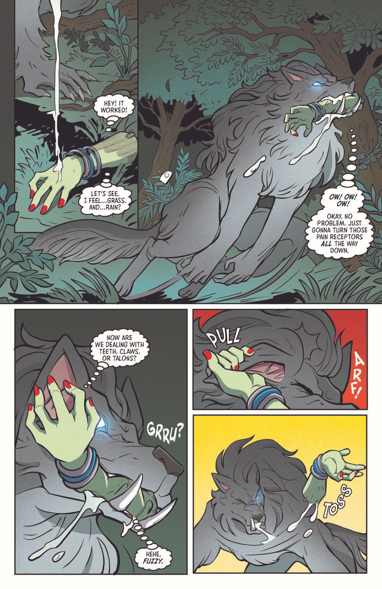 As the ghouls continue to fight their way out of the cursed cabin, the situation goes from bad to scary bad. Hallways are shifting, nobody can find the kitchen, and the floor is on the ceiling—not to mention the pack of monsterfied animals keeping guard outside. There's a gorgon bear, a psychic squirrel, and a…werewolf wolf? The ghouls are in fearious danger now…
