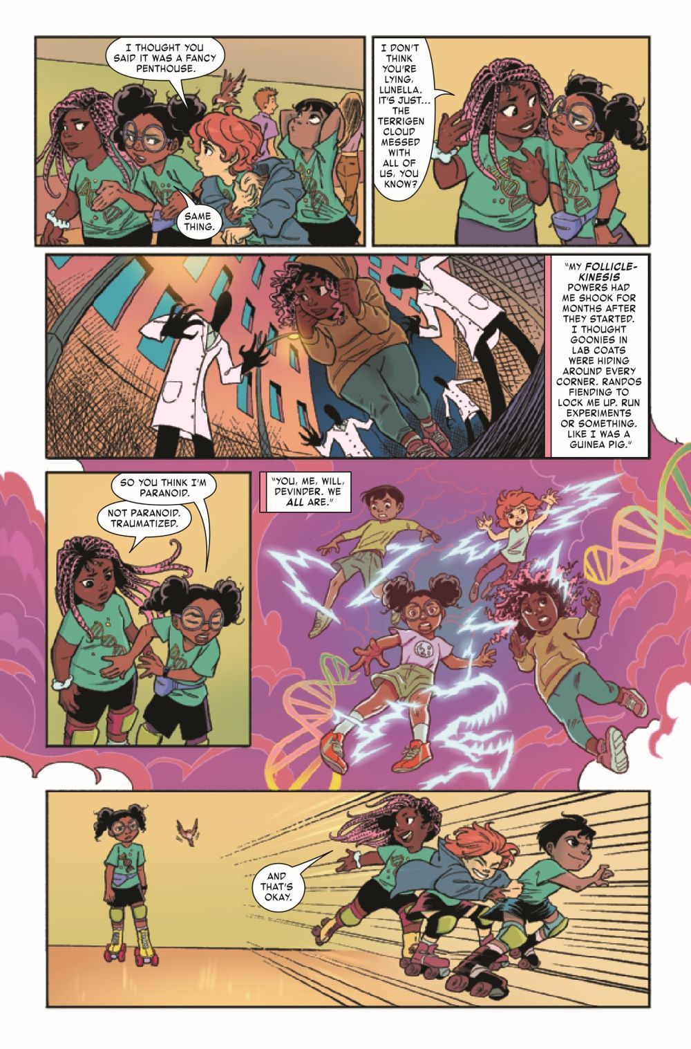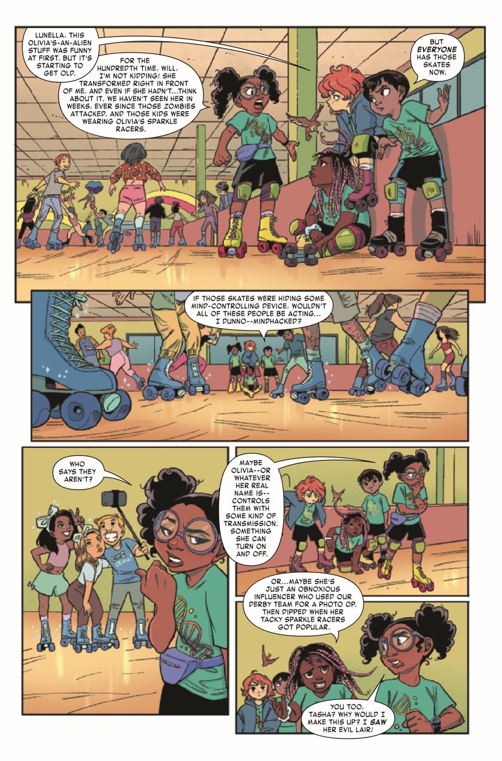 Now that Lunella knows her roller derby teammate tween influencer OMG Olivia is actually a Kree in disguise hoping to control all the Inhumans on Earth, she knows just what to do. She has to stop Olivia before she hurts anyone, especially the rest of the Inhuman kids on the derby team. But sometimes having friends as a super hero just means there are more people to worry about…especially when Olivia's brainwashing nanobots take over Devil Dinosaur!