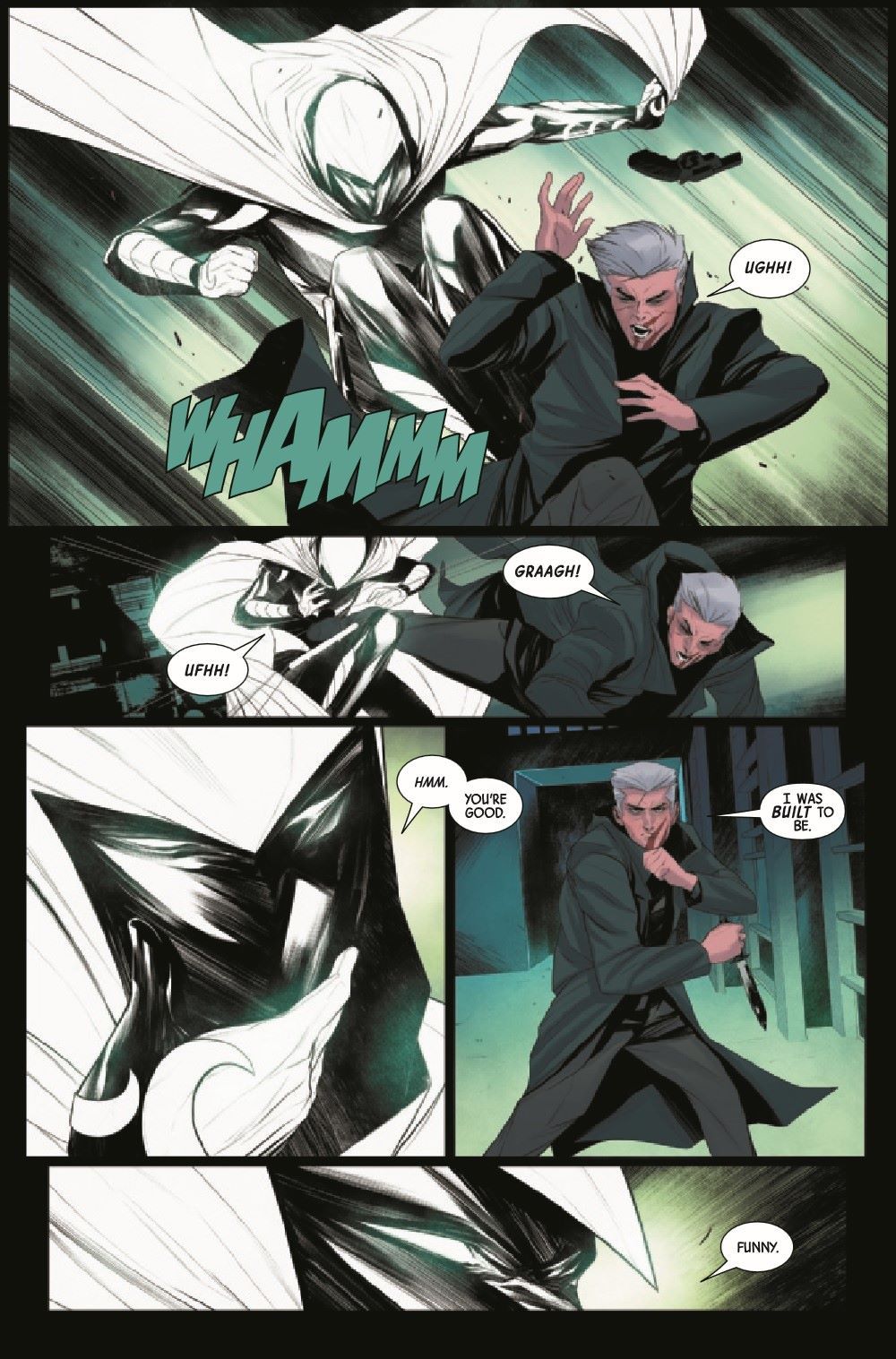 An assassin infiltrates the Midnight Mission, while another hidden enemy strikes at Moon Knight where he is most vulnerable. Attacked on two fronts, the Fist of Khonshu is put on the back foot-- but that's where he's most dangerous!