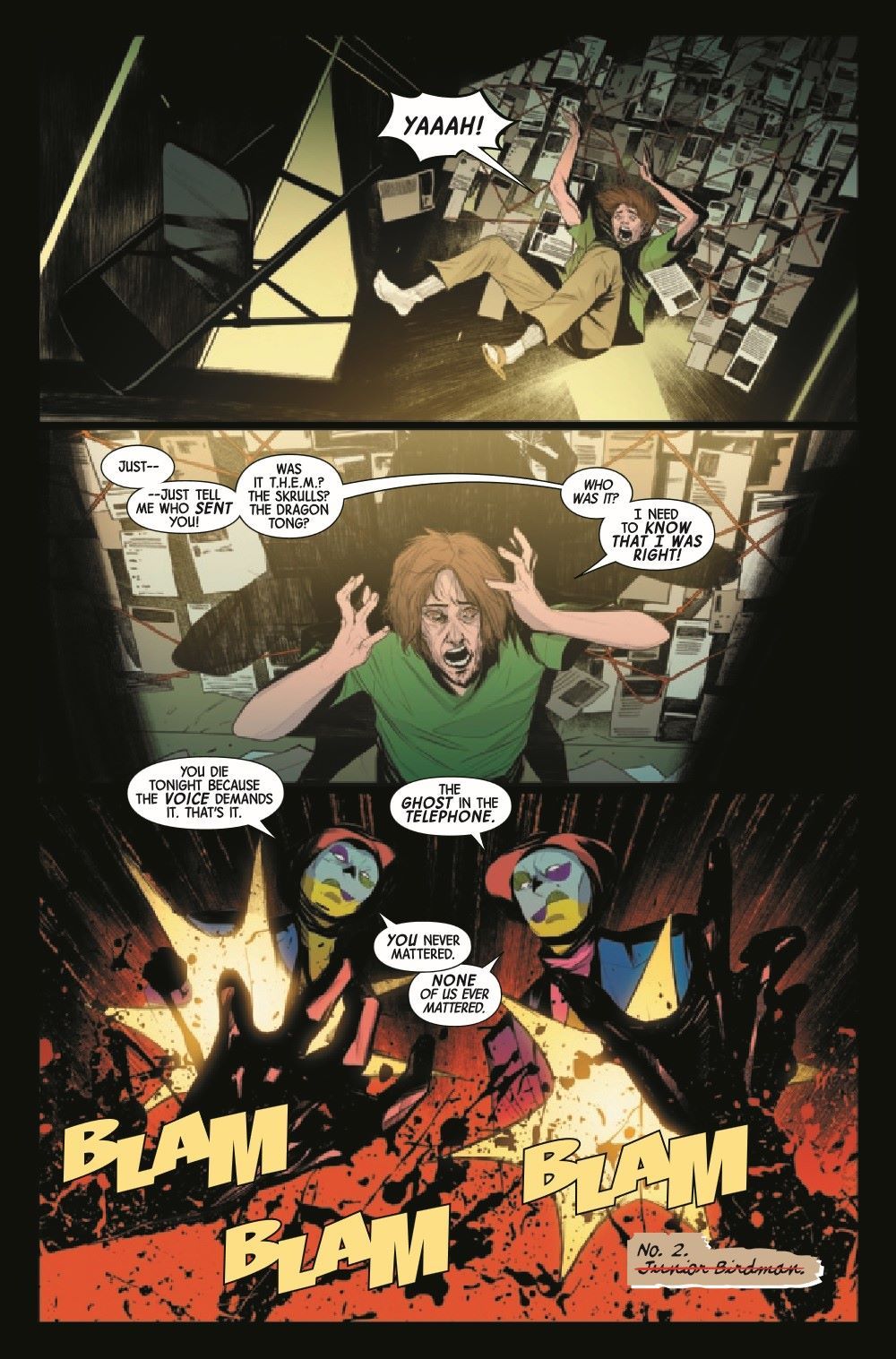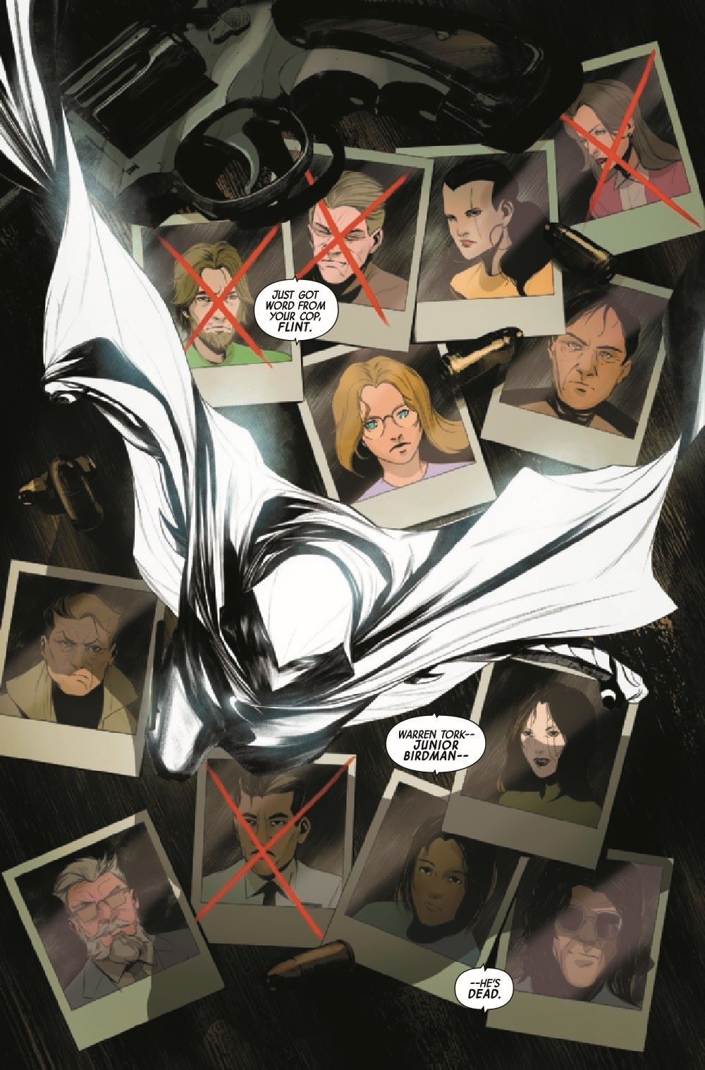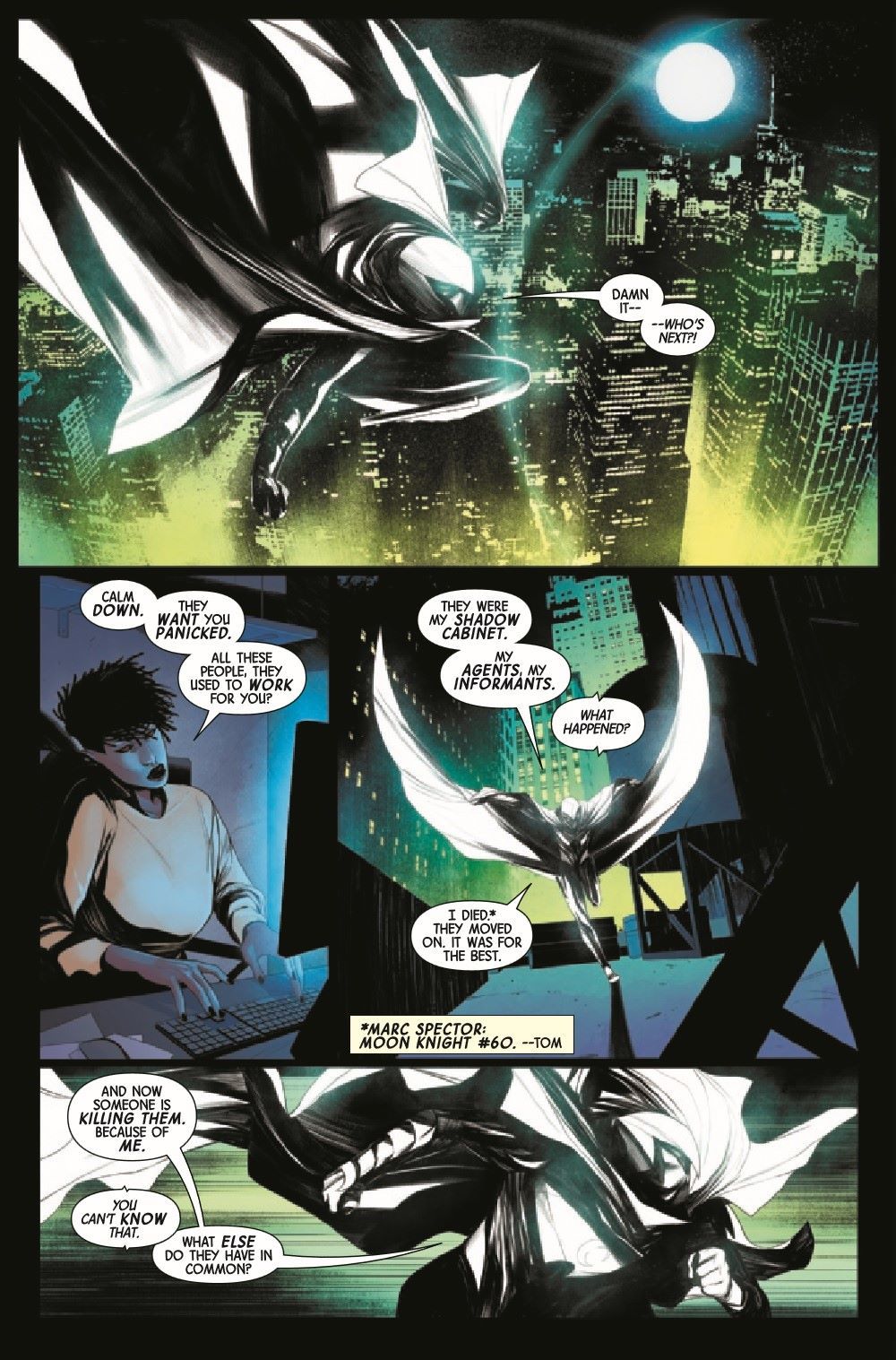 There's blood on the streets as assassins work their way through a list of names containing those who once formed Moon Knight's Shadow Cabinet. But with a number of potential targets and no idea who's next, how can Moon Knight save his former associates? PLUS: Just in time for Black History Month, a second story in which the crescent crusader crosses paths with the Sheriff of the Vampire Nation, Blade!