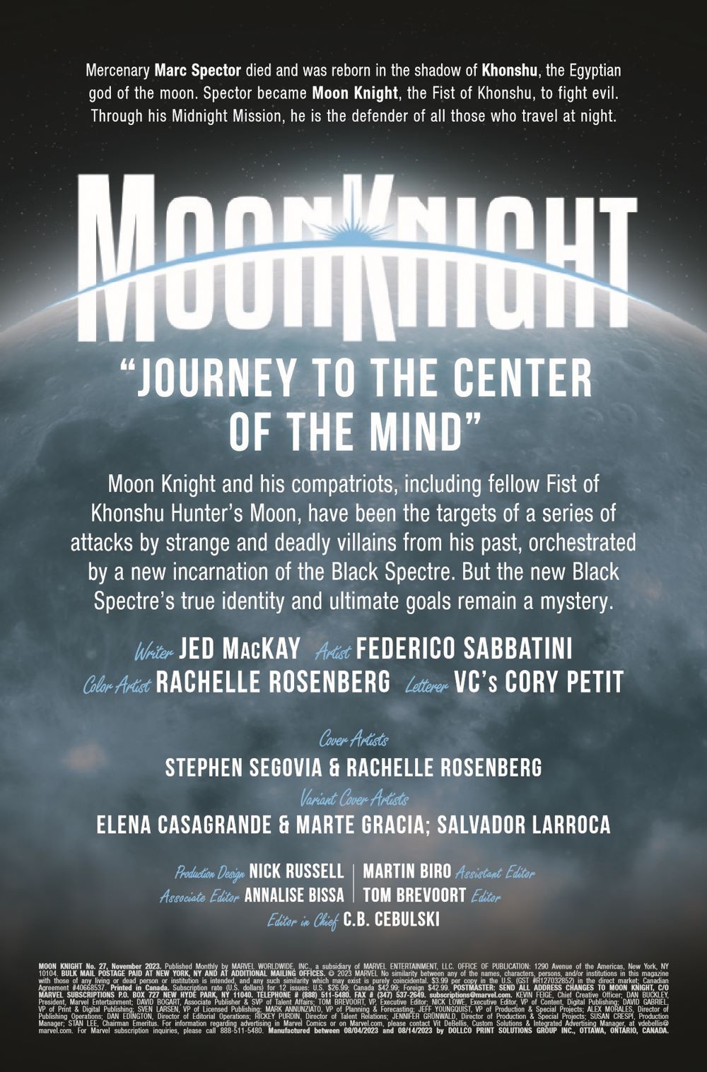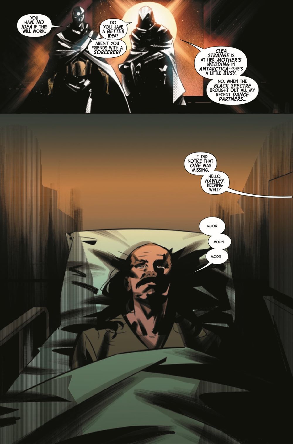 THE HUNT FOR BLACK SPECTRE! On the hunt for the Black Spectre, Moon Knight and Hunter's Moon must chase an informant into the darkest cave of all - the human mind! But what horrors await the Fists of Khonshu in the depths of the psyche?