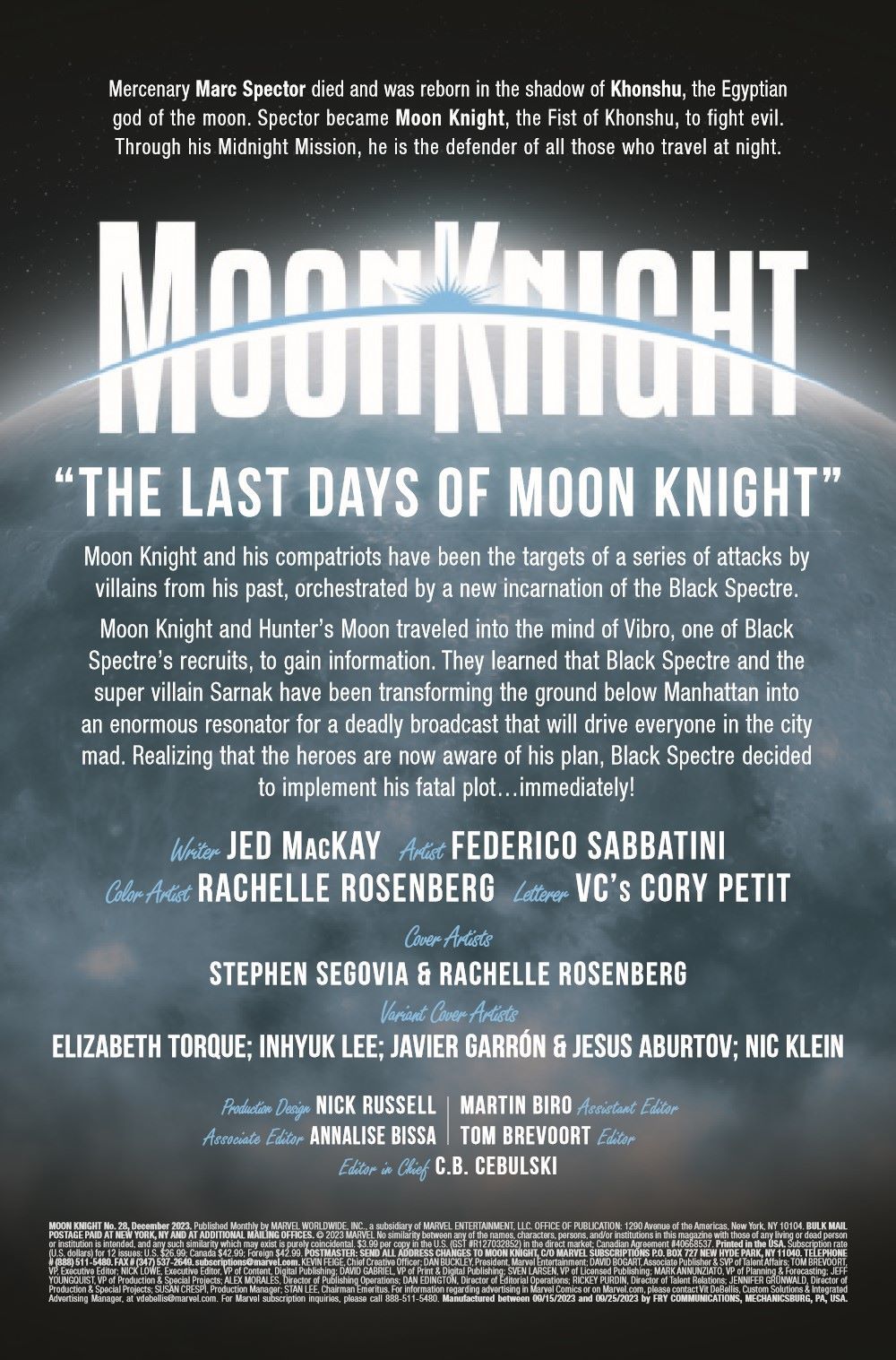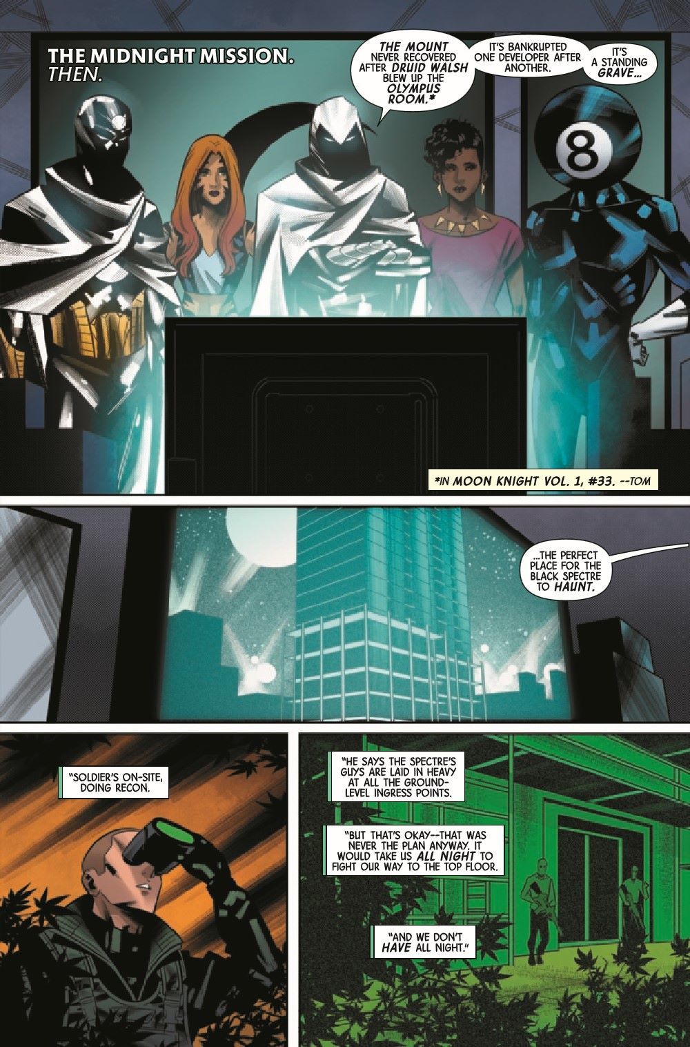 Moon Knight and his allies race to intercept the Black Spectre before his apocalyptic schemes bear fruit - but the clock is ticking, and a city hangs in the balance.