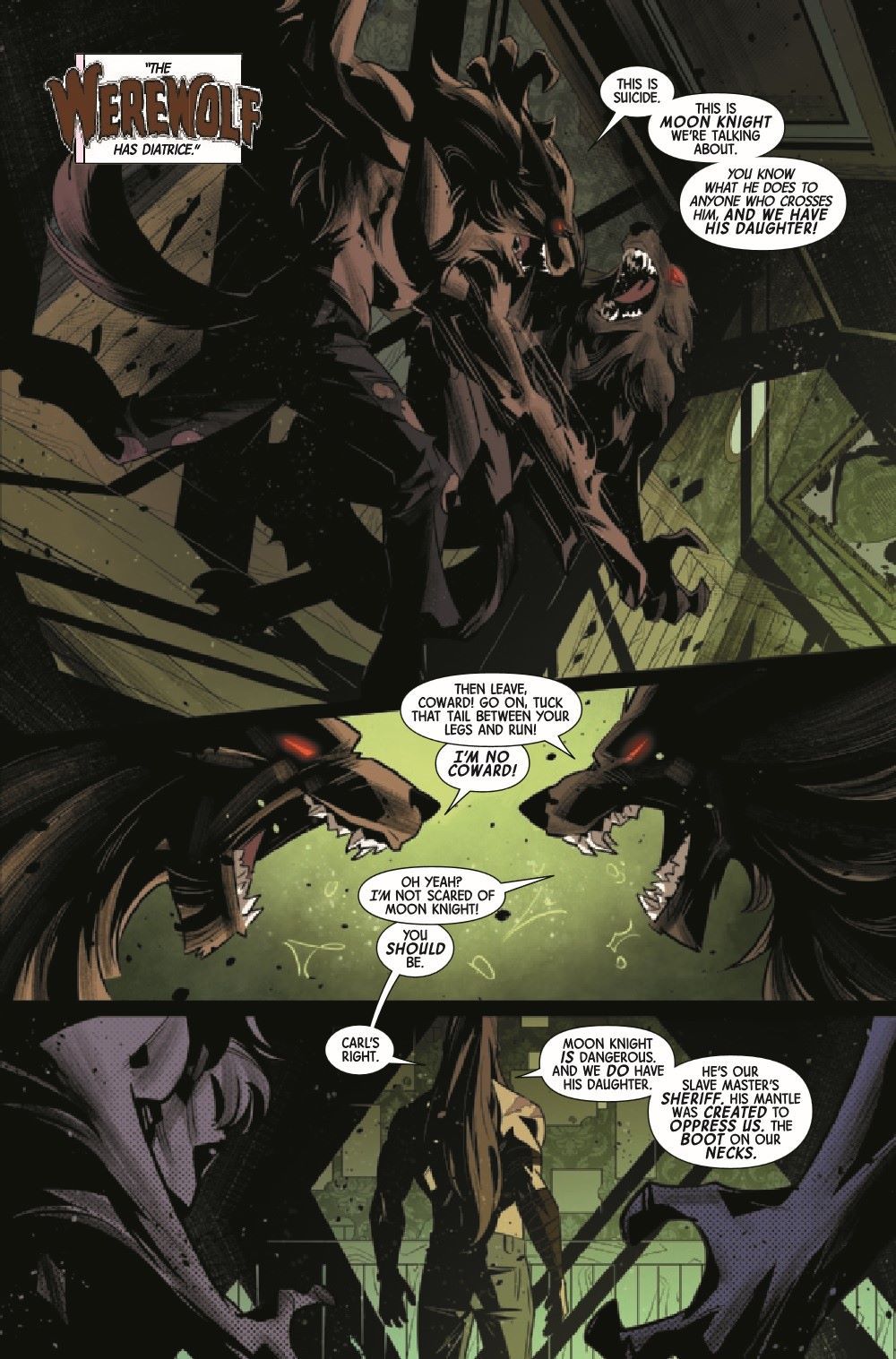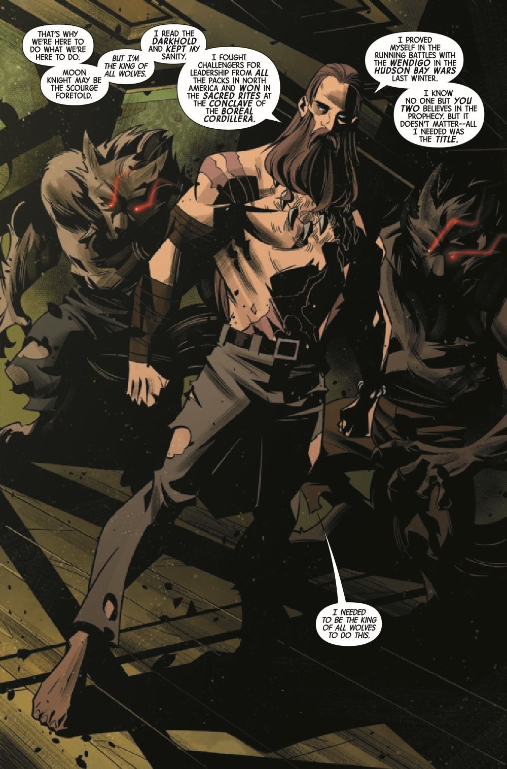 WEREWOLF BY MOON KNIGHT! In the Darkhold, there is a prophecy of how a god might die. Jack Russell, more familiar with that cursed tome than most, would like very much to kill a god and save his people, the people bound in servitude to the moon. But to fulfill that prophecy requires the blood of the Fist of Khonshu, and Moon Knight doesn't bleed easily.