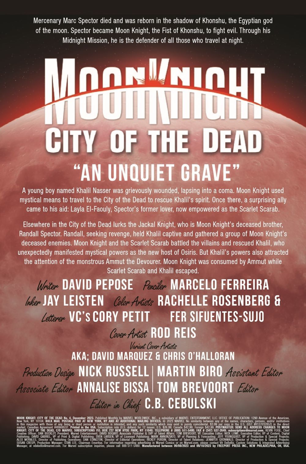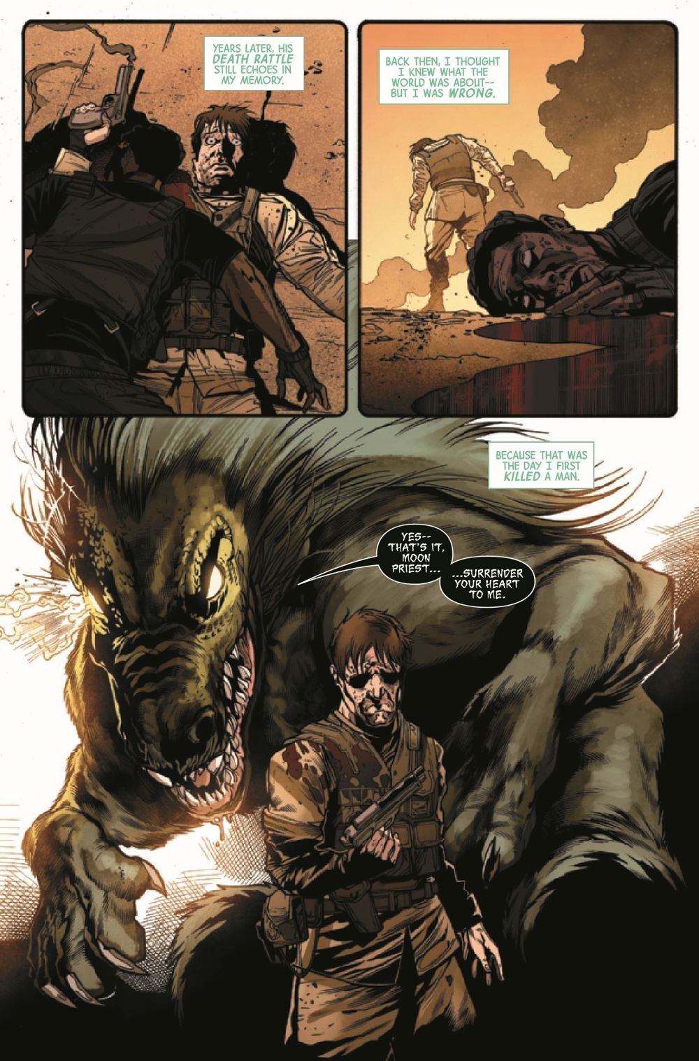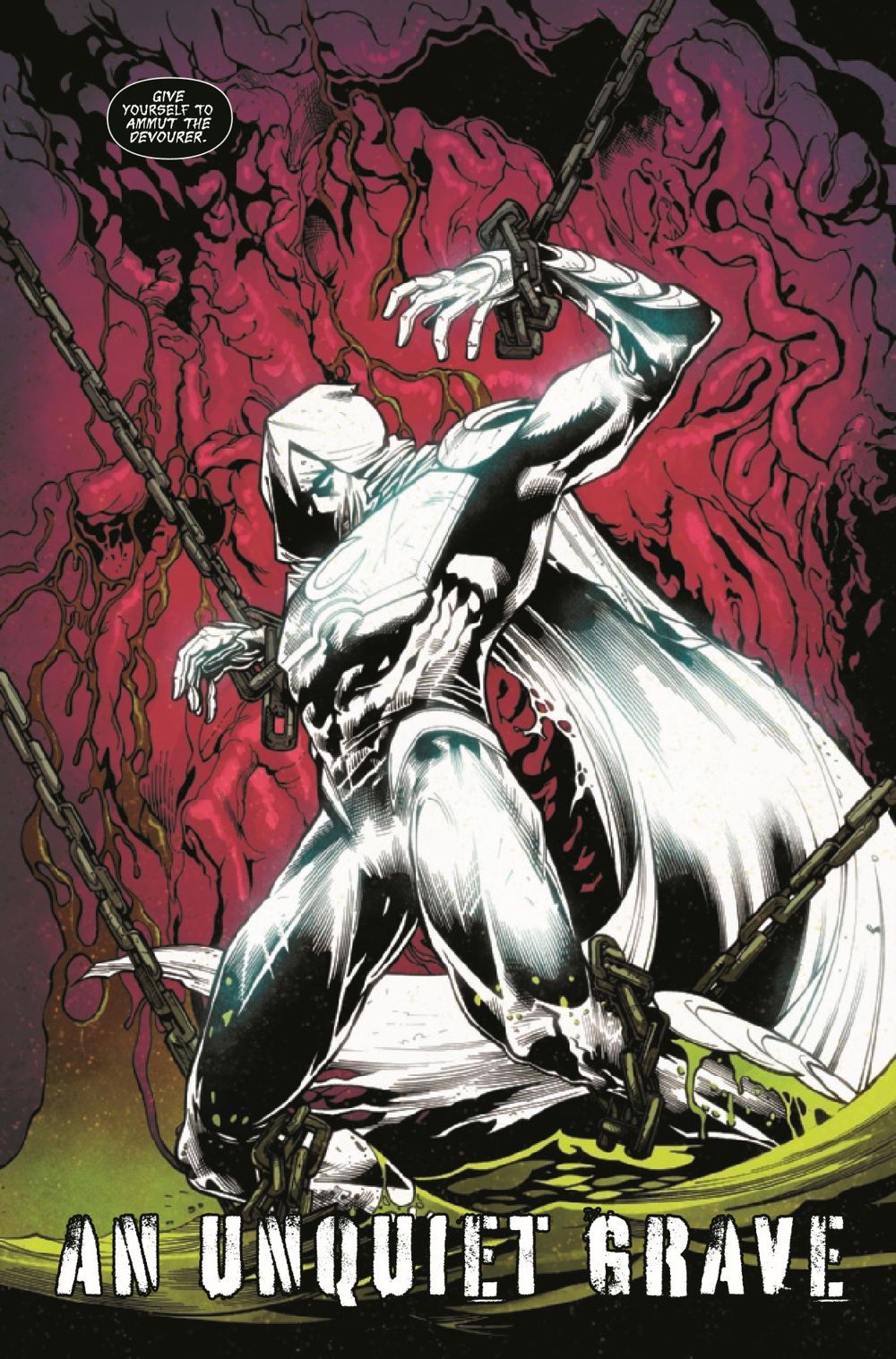 Nothing is more feared in the City of the Dead than the ancient crocodile goddess known as AMMUT THE DEVOURER. Unfortunately for Marc Spector, he is currently being digested inside Ammut's belly, memory by memory. Can Moon Knight survive the weight of his own horrific past, or will the JACKAL KNIGHT rule triumphant across the realms of both the living and the dead? All hope may be lost… That is unless the SCARLET SCARAB has anything to say about it!