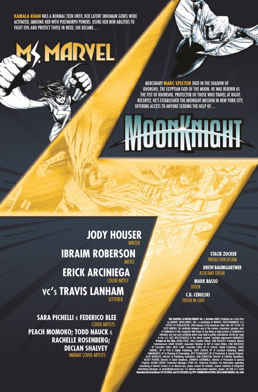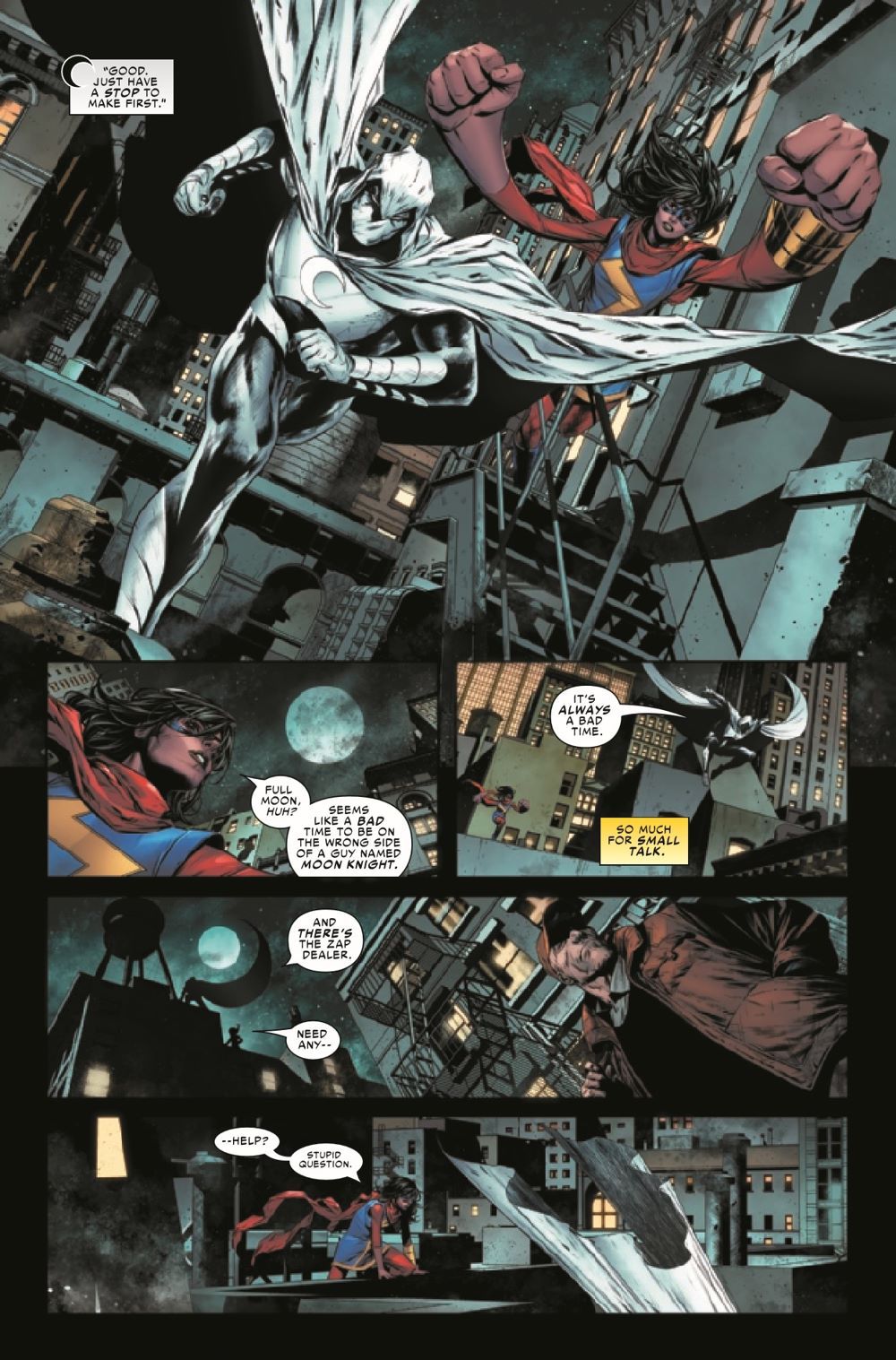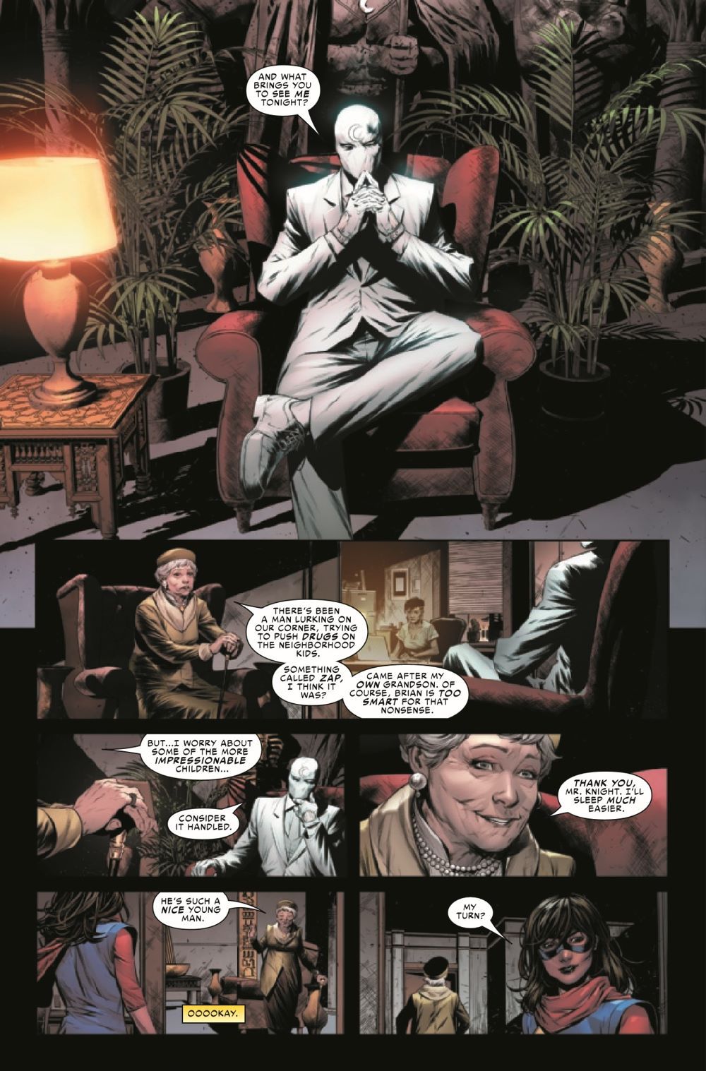 THE FIST OF KHONSHU MEETS THE EMBIGGENED FIST OF MS. MARVEL! MARC SPECTOR, A.K.A. MOON KNIGHT, protects the travelers of night…but what about those traveling to bring him death? A mechanical (and maniacal!) threat brings MS. MARVEL into Moon Knight's orbit, and the gravity of what they uncover will require them to plumb the depths of life and death! The mystery teased in last month's team-up with WOLVERINE continues to unfurl as the super hero spectacle of the summer sizzles on!