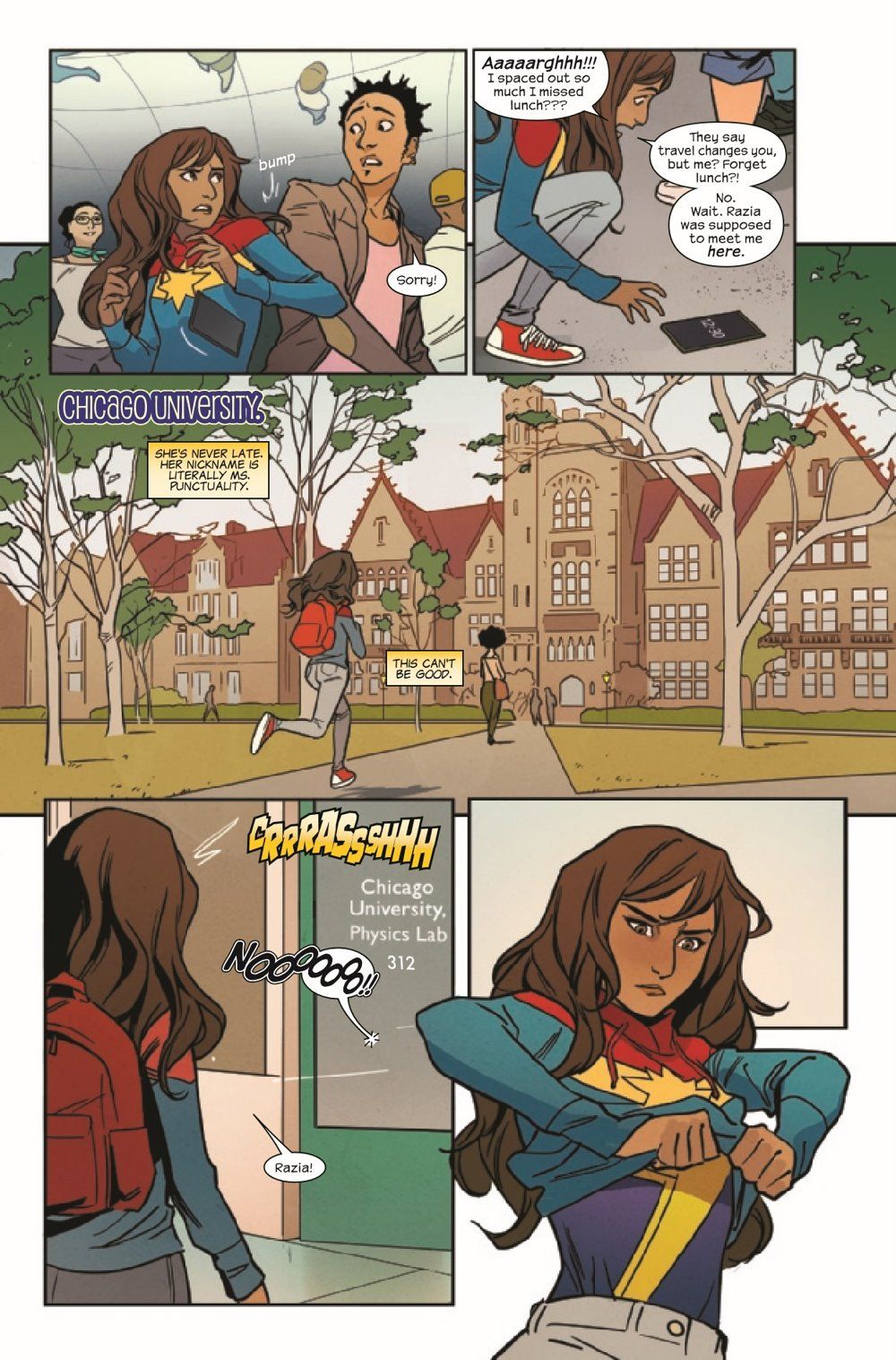 MS. MARVEL RETURNS IN A NEW STORY FROM BEST-SELLING AUTHOR SAMIRA AHMED! While on a break visiting her cousin in Chicago, Kamala Khan stumbles upon a robbery at a university physics lab . . . and maybe sets off an explosion of interdimensional proportions in the process. Still, nothing she can't handle. Or so she thinks, until she gets home and finds her whole world turned upside down . . .and into a Bollywood set?! Why is everyone she knows singing, and how can she make it stop?