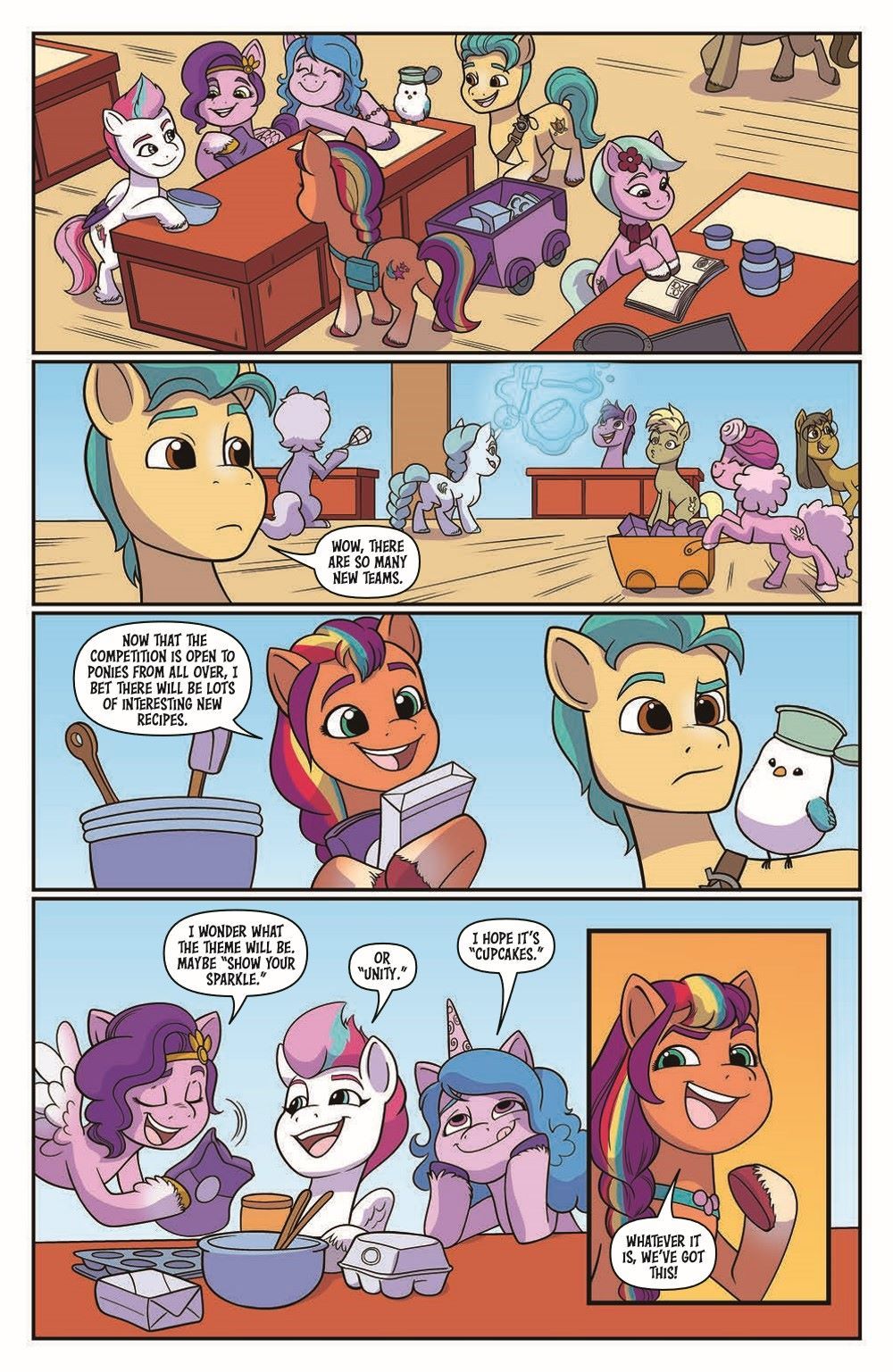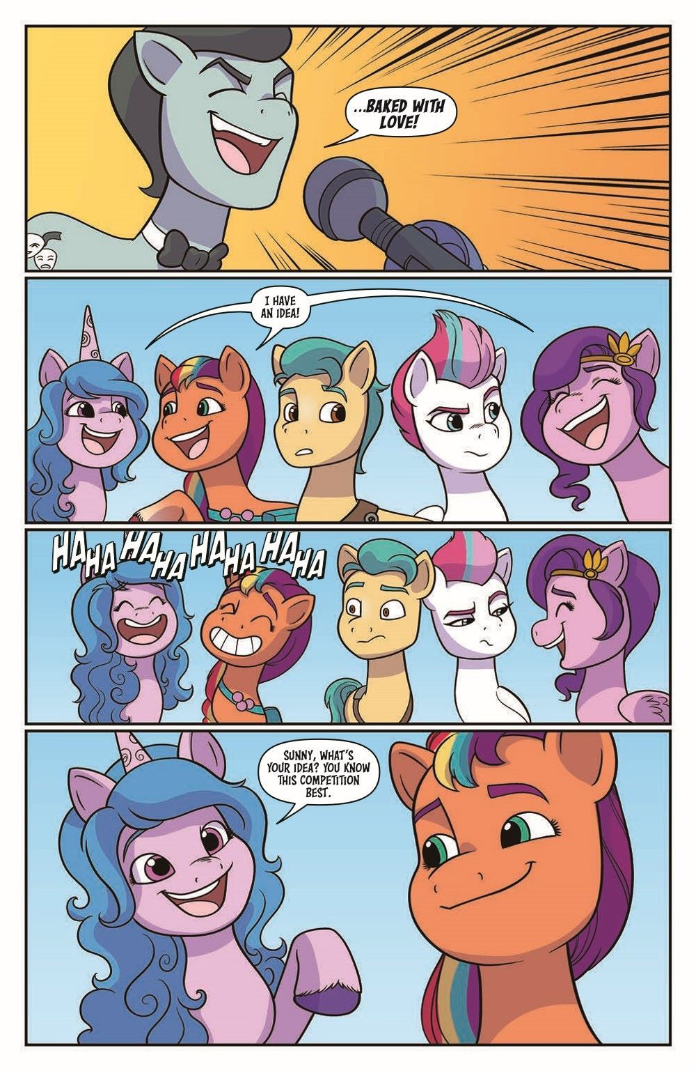 The Mane 5 have entered the Maretime Bay Beachside Bake-Off, but nopony can agree on what to bake! One cup of sugar, two teaspoons of vanilla, and a whole heap of conflicting ideas make for an interesting cookie…