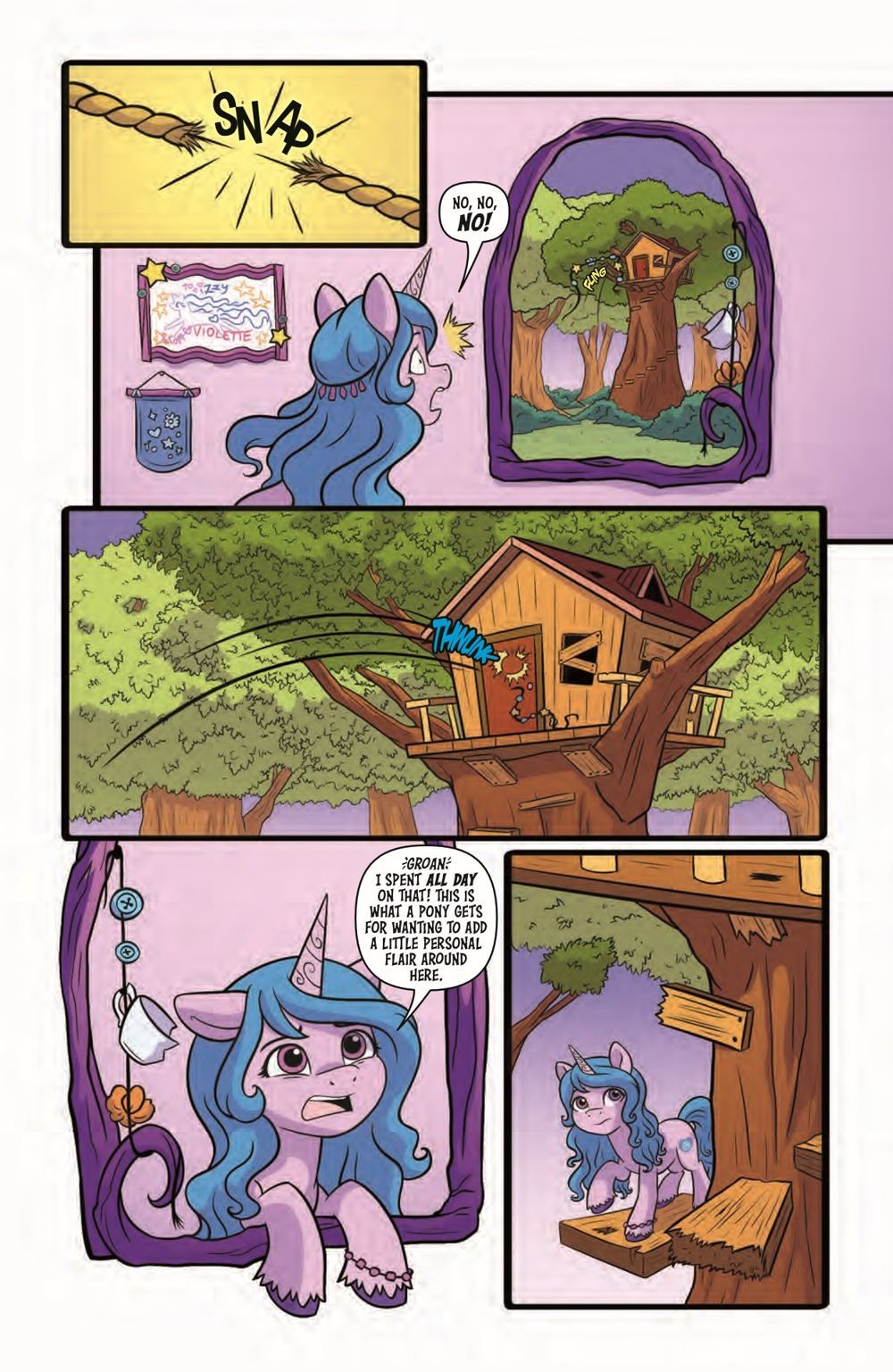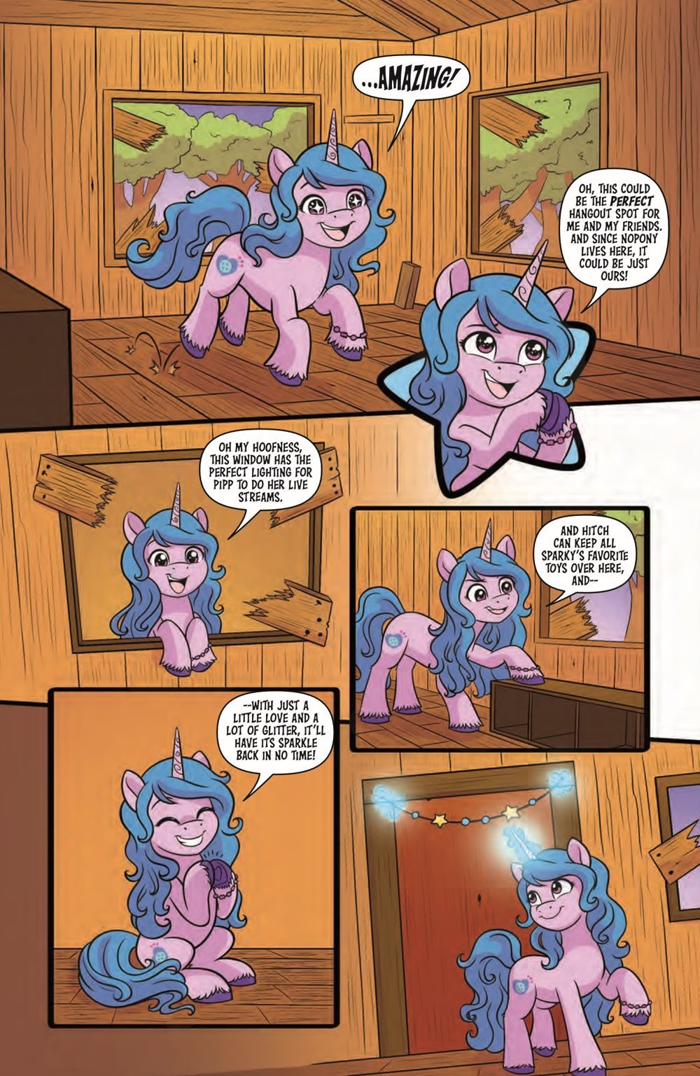 It's time for a TREEHOUSE MAKEOVER! Izzy thinks her old treehouse in Bridlewood would make the perfect hangout for her and her besties. There's only one problem: someponies, or somecreatures, keep messing up the furniture she worked so hard to unicycle. But Izzy is determined to make it sparkle, rain or shine!