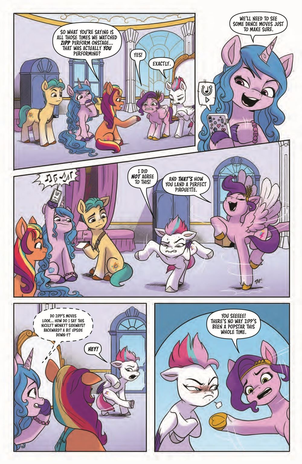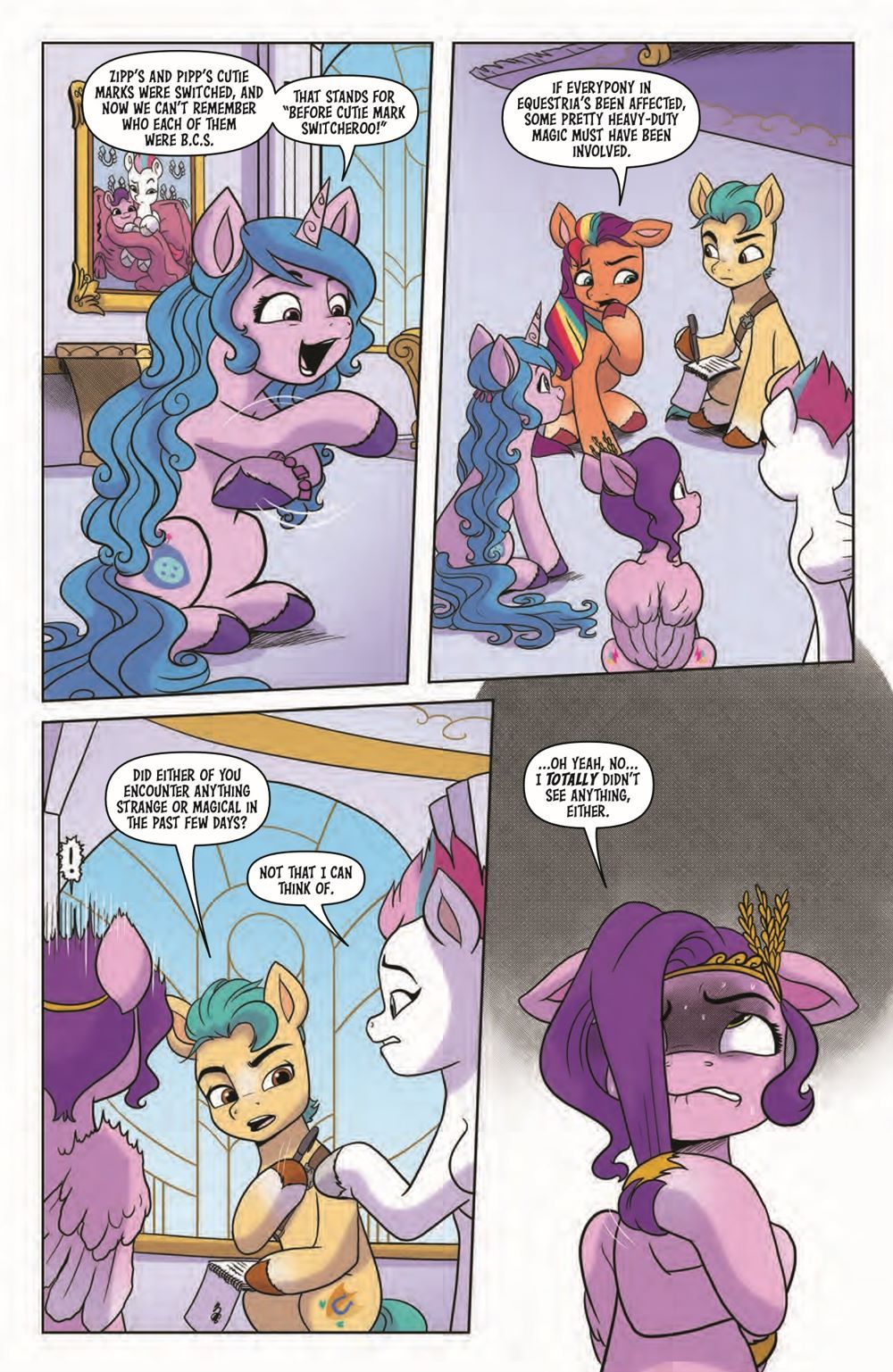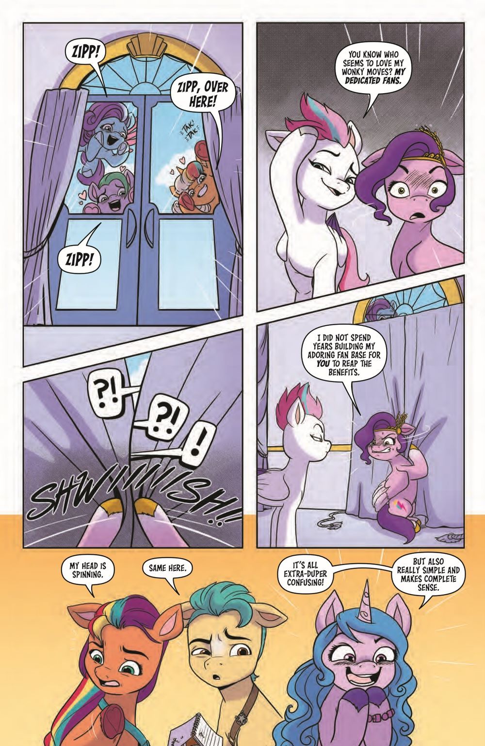 Zipp is Pipp and Pipp is Zipp, and up is down and left is right, and oh my hoofness! Okay, well, it's not that dramatic, but the Zippsqueaks are totally worried because Zipp hasn't posted in three hours. And Pipp can't focus on the Royal Dinner because she had to track down the pony responsible for the freaky switch. Luckily, Sunny, Hitch, and Izzy are in Zephyr Heights to help. Everypony, grab your popcorn. This is going to be a good one!